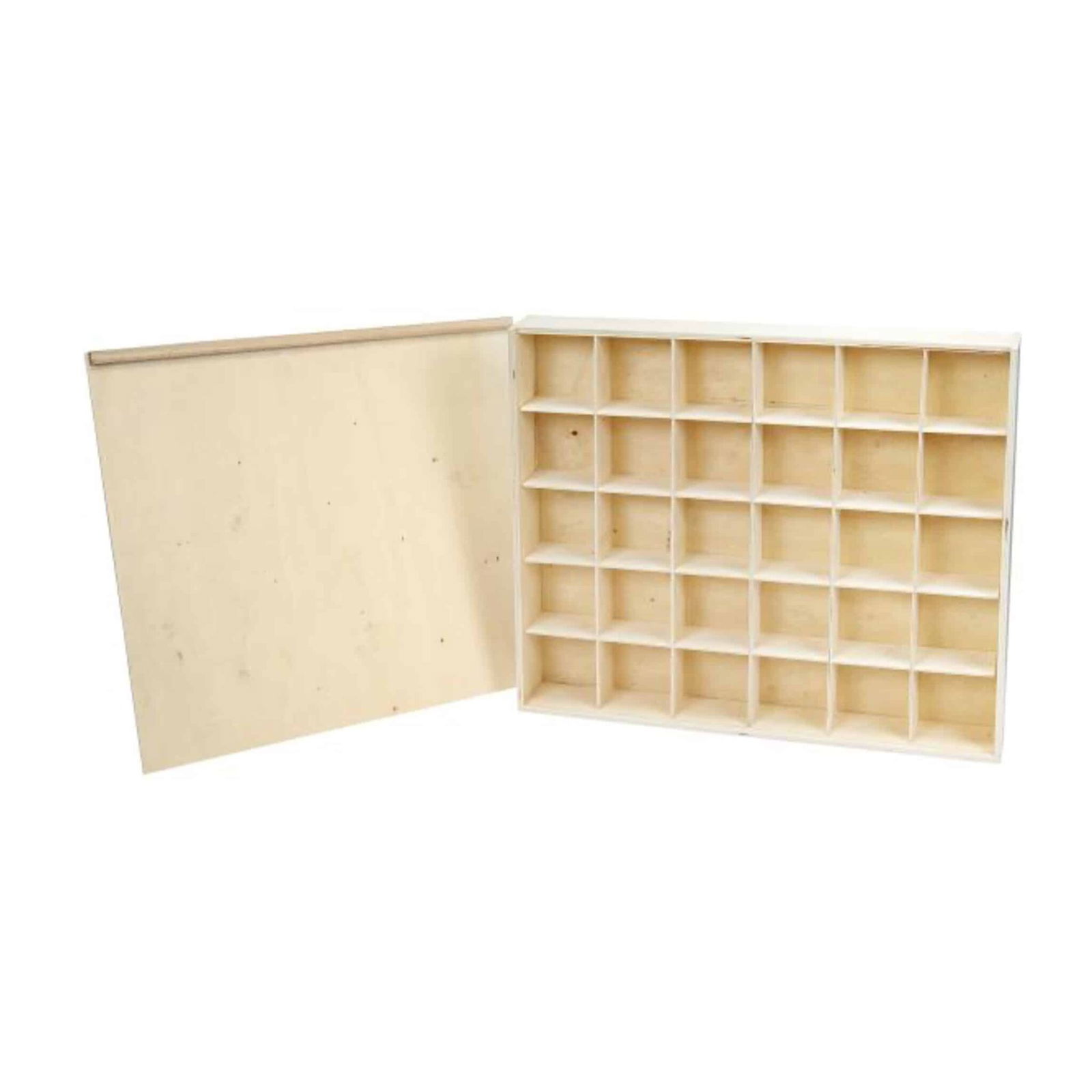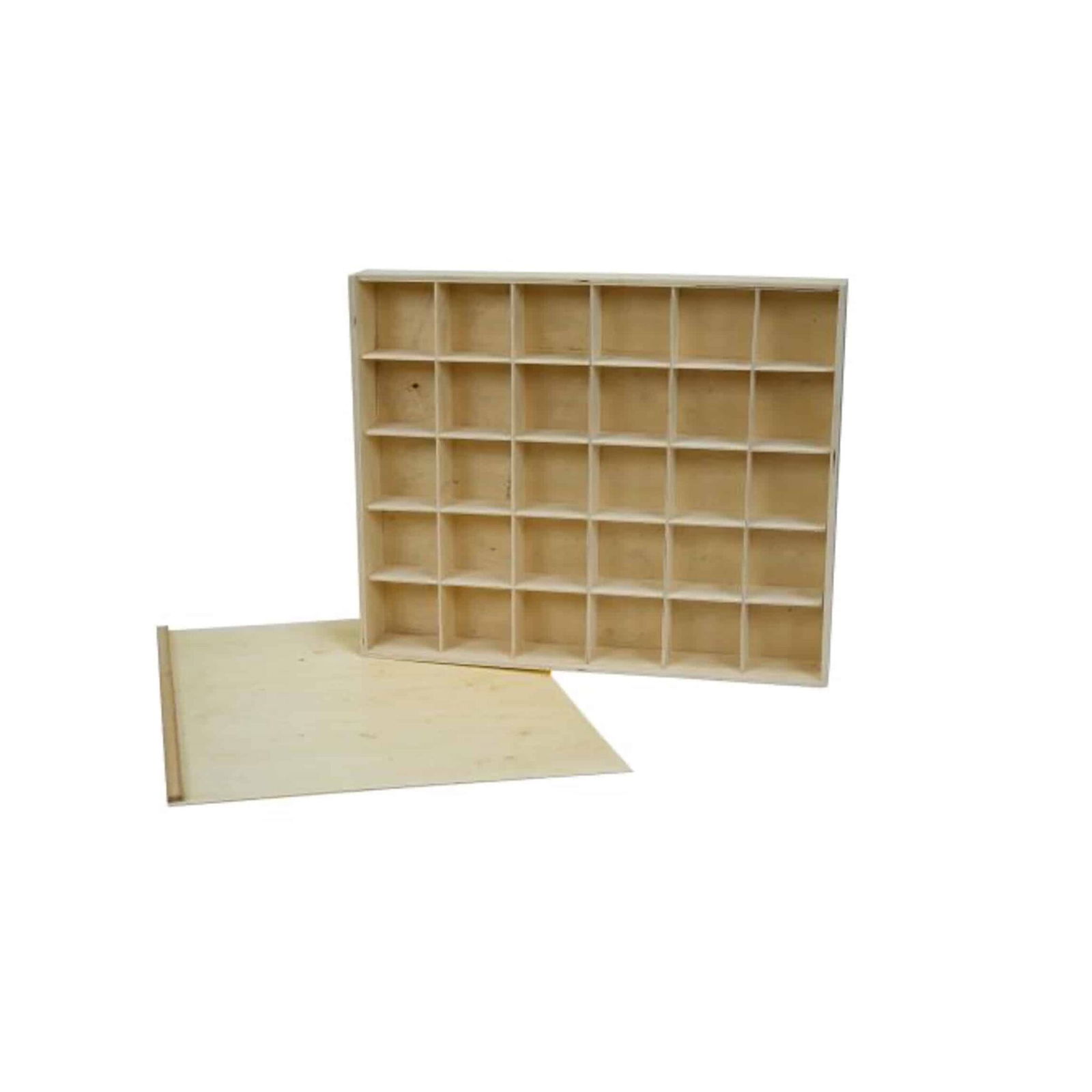 Die Holzkiste für 30 Stempel ist die ideale Lösung, um Struktur in jede kreative Umgebung zu bringen. Ob im Bastelzimmer, im Kinderatelier oder bei professionellen Workshops – durch ihre vielseitige Einsetzbarkeit und Anpassungsfähigkeit ist sie ein unverzichtbares Zubehör für alle, die gern mit Kreativmaterialien arbeiten. Mit ihrem hochwertigen Holzdesign verbindet sie Funktionalität und Stil auf eine besondere Weise. Bringen Sie Ordnung und neuen Schwung in Ihr kreatives Schaffen – mit dieser vielseitigen Holzkiste!