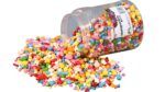 Unsere Holzperlen sind in verschiedenen Formen, Größen und Farben erhältlich und machen Spaß beim Spielen und Lernen. Der Spieleimer ist randvoll mit Perlen unterschiedlicher Texturen, von glatten Kugelperlen bis hin zu gerillten länglichen Perlen. Die lebendigen Farben regen die Kreativität an. Die Kinder können damit Ketten, Armbänder, Anhänger und vieles mehr basteln. Beim Fädeln der Perlen üben sie nicht nur ihre Feinmotorik, sondern auch Geduld und Konzentration. Die Holzperlen können sowohl für individuelle Beschäftigung als auch für gemeinsames Basteln in der Gruppe verwendet werden.
