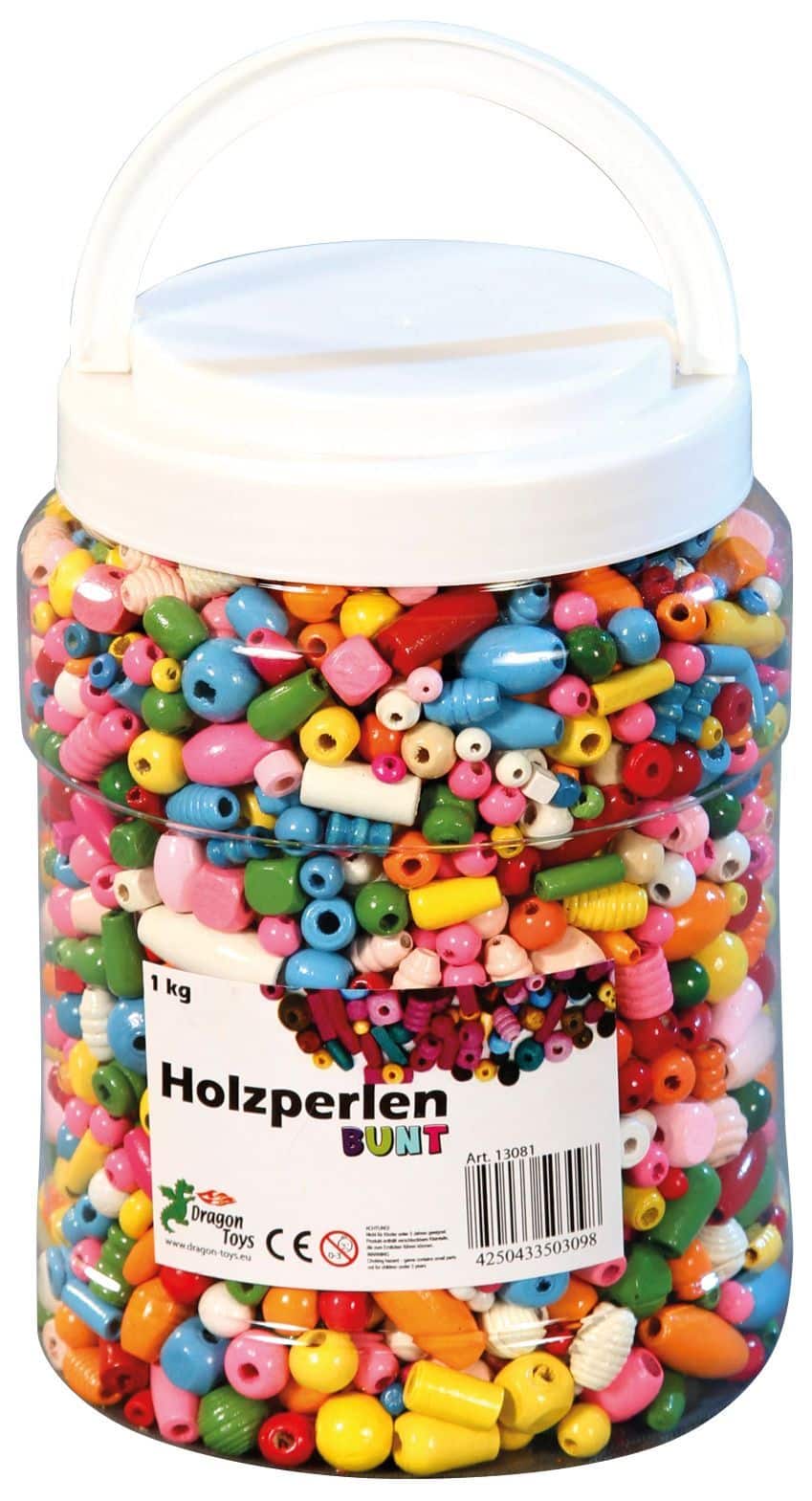 Holzperlen sind ein natürliches Spiel- und Lernmaterial mit einer angenehmen Haptik. Mit ein wenig Übung kann jedes Kind stolz auf eine farbenfrohe Kette oder einen selbstgefertigten Anhänger sein. Während das Kind die Freude am Ausprobieren und die Erfolgserlebnisse genießt, trainiert es spielerisch seine Feinmotorik. Das umfangreiche Set an bunten Holzperlen regt immer wieder die Kreativität an und ermöglicht das Kombinieren von Farben und Formen.