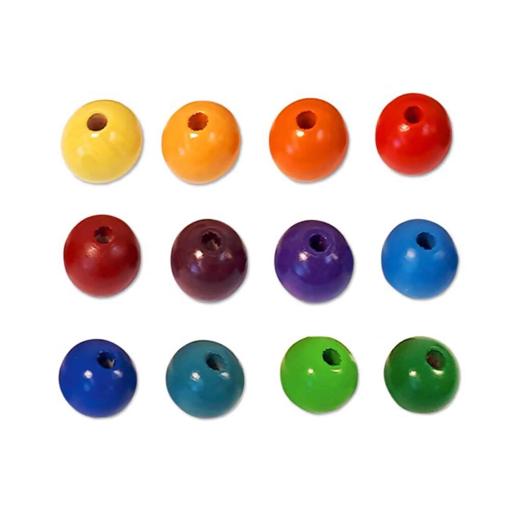 Holzperlen in 12 Farben – Kreatives Fädeln und Lernen!