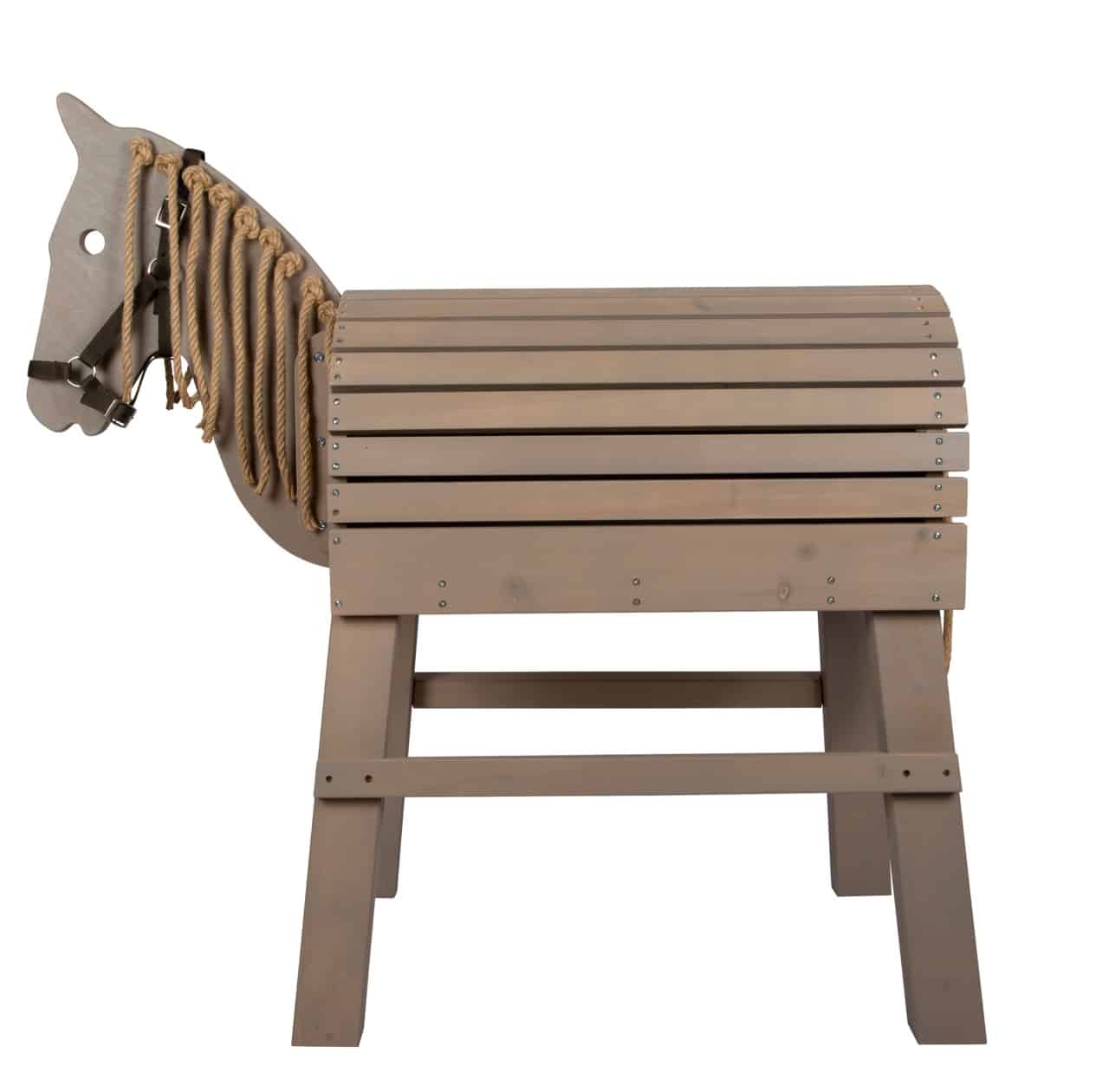 - Für Drinnen & Draußen geeignet: Das robuste Holz wurde mit einer witterungsbeständigen Farbe behandelt. Dadurch kann das Pferd problemlos das ganze Jahr über im Garten stehen und zu Outdoor-Abenteuern einladen. Gleichzeitig ist es durch seinen warmen, grauen Farbton ein stilvolles Spielzeug für jedes Kinderzimmer.