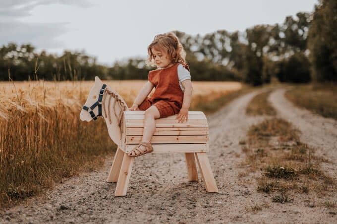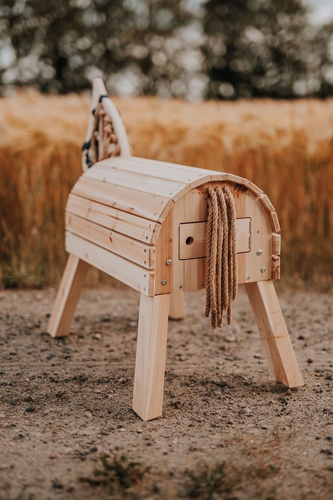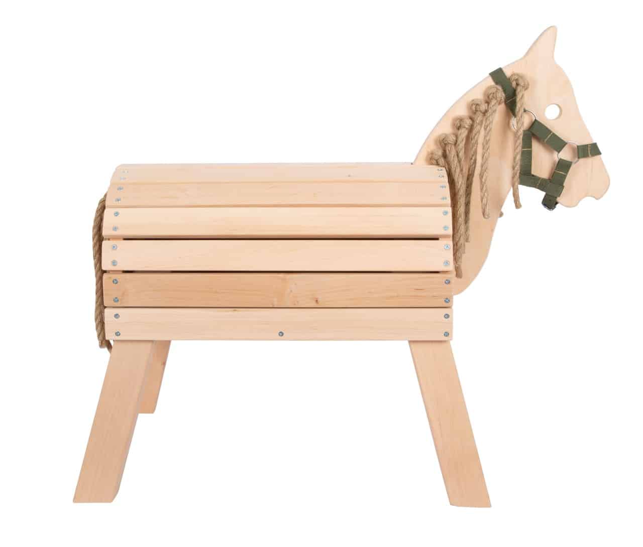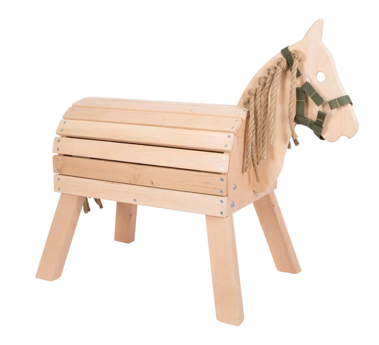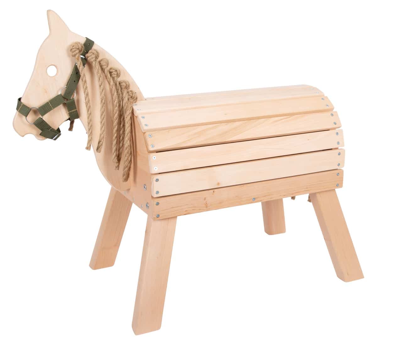 Dieses kompakte Holzpferd wurde speziell für die Bedürfnisse kleinerer Kinder entwickelt. Es fördert spielerisch die Motorik, regt die Fantasie an und bietet unzählige Möglichkeiten zur individuellen Gestaltung.