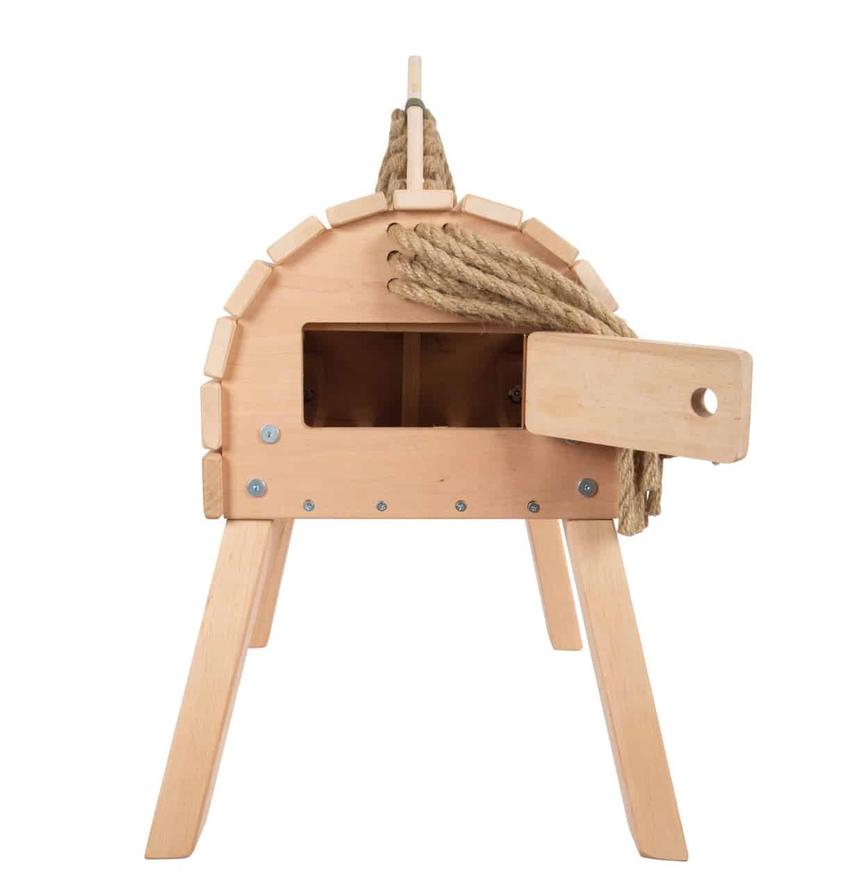 - Praktischer Stauraum im Bauch: Ein cleveres Detail ist der versteckte Stauraum im Inneren des Pferdes. Über eine seitliche Klappe können Putzzeug, das mitgelieferte Halfter, kleine Schätze oder Proviant für den nächsten Ausritt sicher verstaut werden.