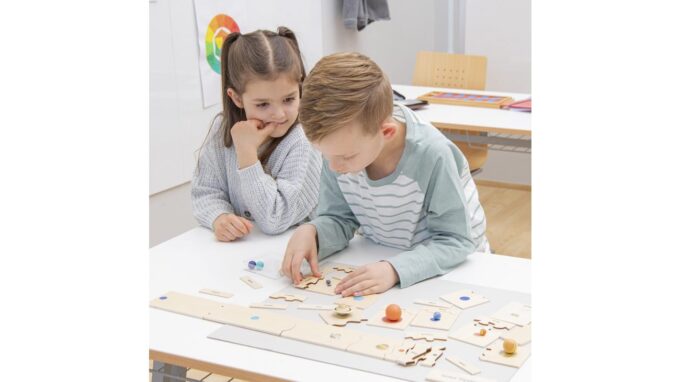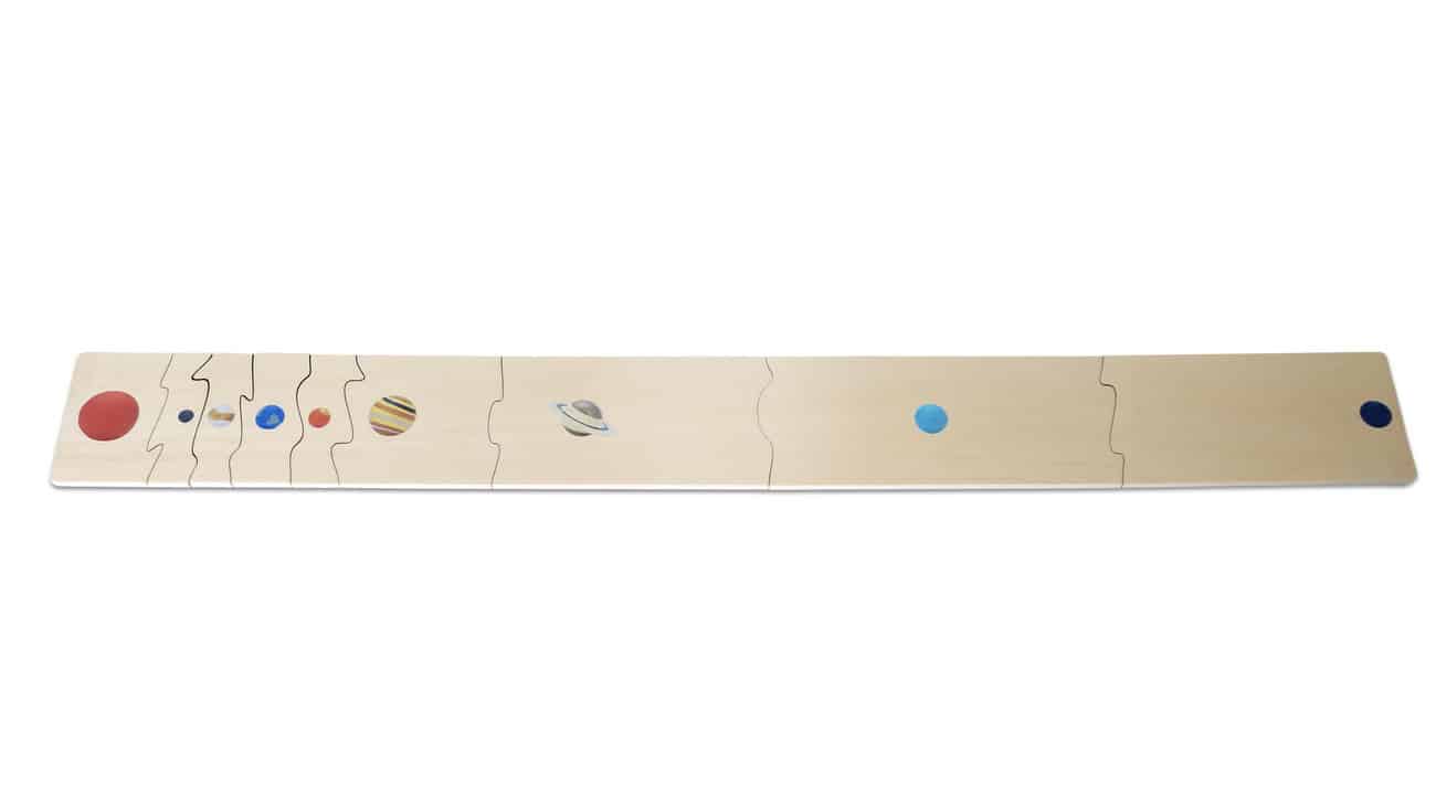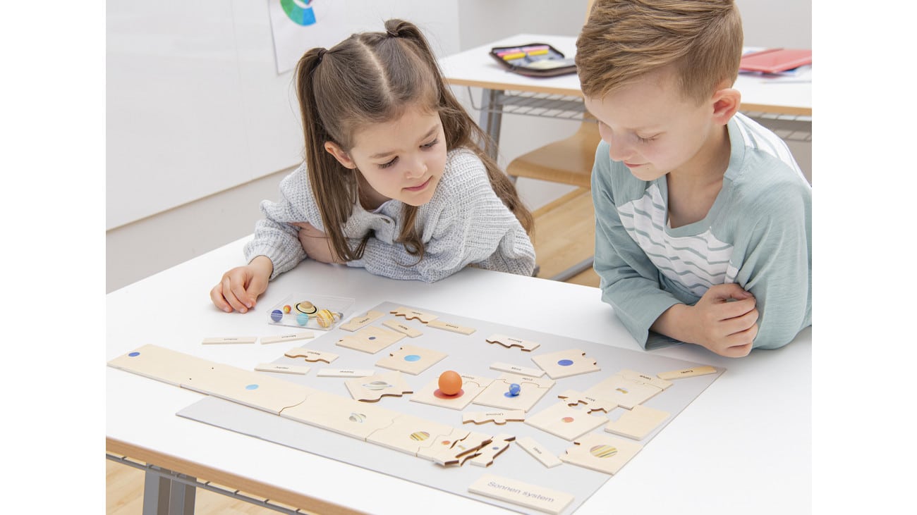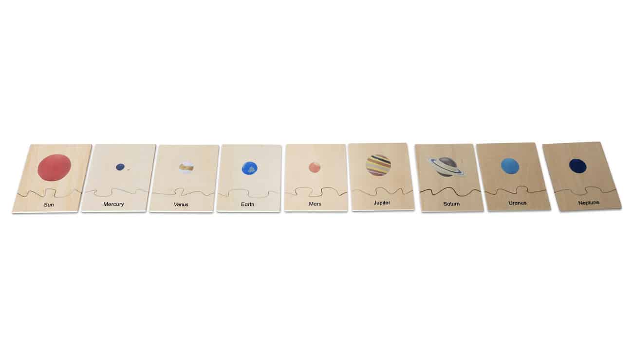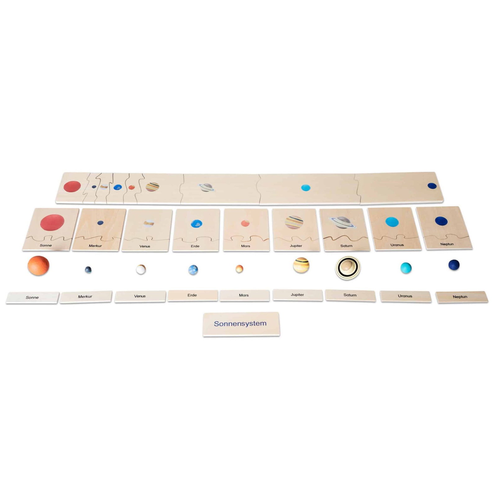 Zusätzlich enthält das Set 2 Holzpuzzles, mit denen die Kinder die Planetenreihenfolge und -namen spielerisch erlernen können. Durch das Zusammenlegen der Puzzlestücke können sie sich selbst kontrollieren und so ihren Lernerfolg direkt überprüfen.