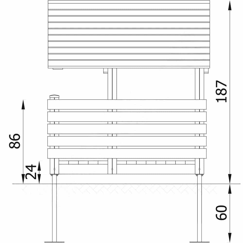 - Wandhöhe: Über Boden/Podest: 86/62 cm