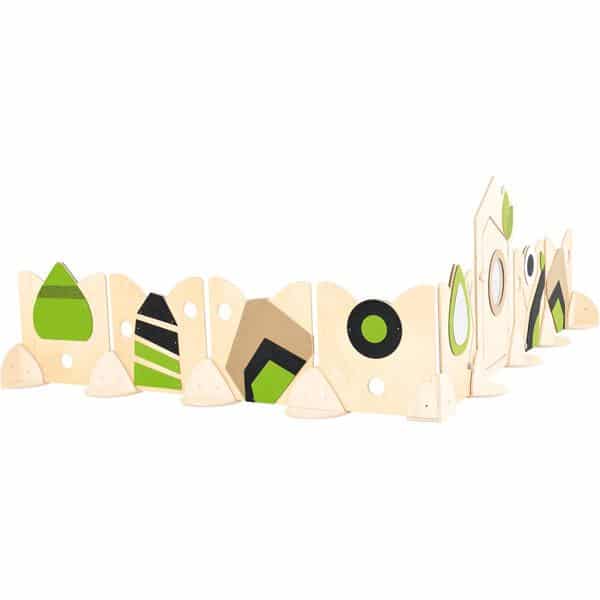 Mit diesen Holztrennwänden können schnell verschiedene Bereiche abgetrennt werden: Spiel- oder Erholungsbereich, Krabbelecke. Spiel- und Sensorikelemente beschäftigen die Kleinen zusätzlich. Die stabilen Ständer sorgen für einen sicheren Stand. Zusätzlich können die Außenelemente auch an der Wand befestigt werden. Dank dem Einsatz von Filzelementen verhelfen sie auch zu mehr Ruhe, weil sie störende Geräusche dämpfen. Die Module passen farblich und thematisch zu unseren Spielecken Alpenblick (096950) und Flora (099386). Alle Schmuck- und Spielelemente beidseitig.