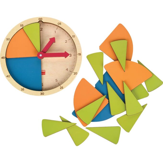 Die Holzuhr – Lasst uns die Uhrzeit lernen ist eine wunderbare Lernhilfe, die Kindern auf anschauliche Weise zeigt, wie eine Stunde in kleinere, überschaubare Zeitabschnitte unterteilt werden kann. Inspiriert von der Montessoripädagogik, erleichtert die bunte Holzuhr es Kindern, das Prinzip der Uhr und die Einteilung einer Stunde interaktiv zu verstehen.