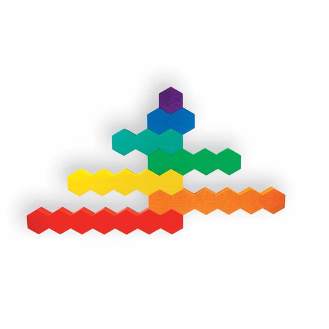 - Einzigartige Struktur und Stabilität: Die hexagonale Form der Bausteine sorgt für eine innere Verzahnung, die außergewöhnliche Stabilität bietet. Dies ermutigt Kinder, dekorativ oder konstruktiv zu experimentieren, während sie feststellen, wie ihre Konstruktionen auch ohne viele Bausteine stabil stehen können.