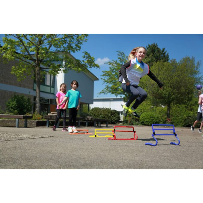 Die Hürden, die in vier auffälligen Farben geliefert werden, sind robust und leicht. Sie eignen sich hervorragend für den Einsatz in der Halle oder im Freien, was sie zu einem idealen Begleiter für Schulen, Vereine und Familientraining macht. Durch ihre stabile Bauweise und das geringe Gewicht lassen sie sich leicht transportieren und aufstellen. Mit diesem Set fördern Sie nicht nur sportliche Fähigkeiten, sondern sorgen auch für abwechslungsreiche und kreative Übungseinheiten.