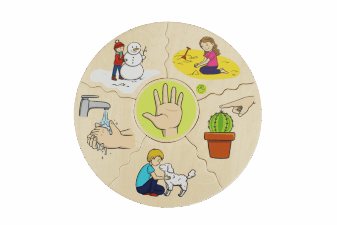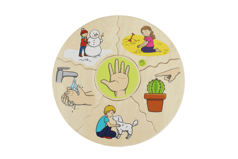 Mit dem HUMANICO Zuordnungspuzzle „5 Sinne“ tauchen Kinder in die faszinierende Welt ihrer eigenen Wahrnehmung ein. Durch dieses interaktive Spiel lernen sie, verschiedene Empfindungen zu identifizieren und zuzuordnen: von stachelig scharfen Oberflächen, über süße Geschmackserlebnisse, duftende Blumenaromen, schrille Geräusche bis hin zu den Kontrasten von Hell und Dunkel.