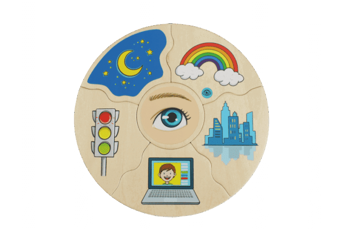Dieses Puzzle lädt Kinder ein, ihre Sinne – Tasten, Schmecken, Riechen, Hören und Sehen – genauer zu betrachten, zu verstehen und deren entscheidende Rolle in ihrem täglichen Leben wertzuschätzen. Das Spiel fördert gezielt die Wahrnehmung, die Sensibilisierung für die Umwelt und die sprachliche Ausdrucksfähigkeit.