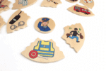 - Puzzleteile mit Selbstkontrollfunktion, die nur passen, wenn der Beruf und der Gegenstand übereinstimmen.
