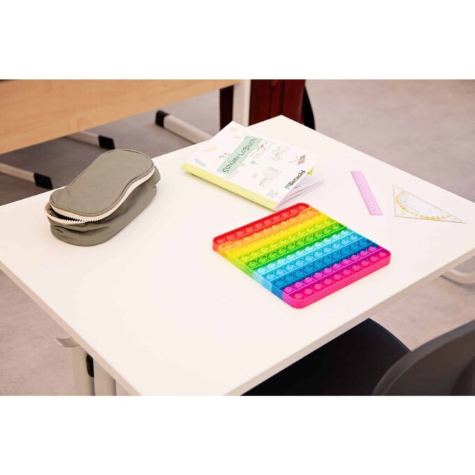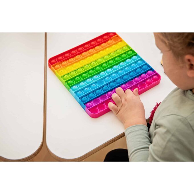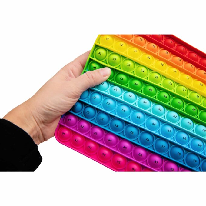 Der Hunderter-Plopper wurde mit einem besonderen Augenmerk auf kinderfreundliches Design entwickelt. Die leuchtenden Farben der Silikonblasen ziehen die Aufmerksamkeit der Kinder an und machen das Ploppen so vielschichtig und unterhaltsam. Der Handlingskomfort sorgt dafür, dass die Kinder das Spielzeug immer wieder verwenden möchten, um Spaß am Lernen zu haben.