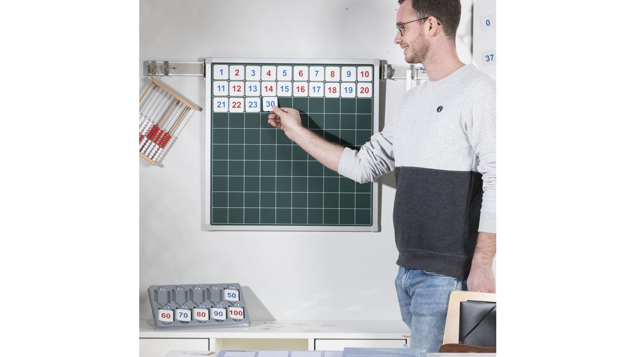 Die Hunderter-Tafel kommt in den Abmessungen 60 x 60 cm und ist ideal geeignet, um ihr Wissen über Zahlen durch aktives Lernen zu vertiefen. Die Tafel ist nicht nur magnethaftend, sondern lässt sich auch mit Kreide beschreiben und ist dadurch vielseitig einsetzbar. Sie kann schnell abgewischt und für verschiedene Übungen immer wieder neu beschriftet werden.