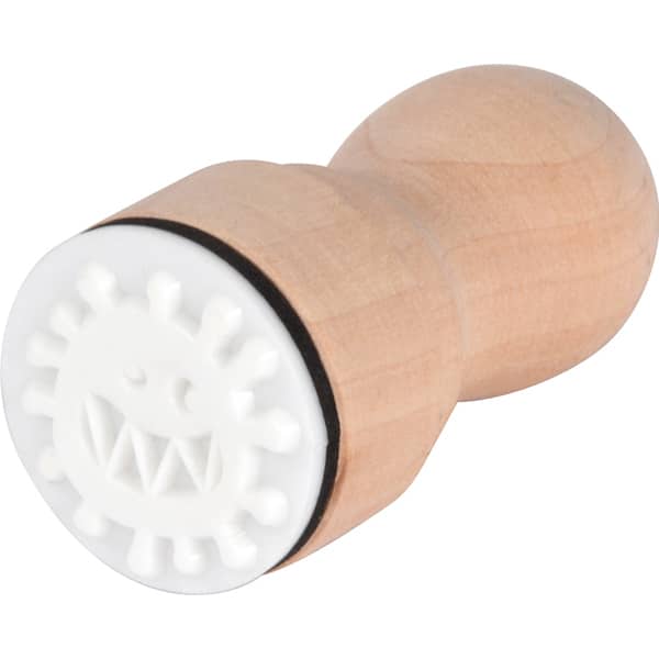 Das Set enthält einen langlebigen Holzstempel mit einem detaillierten Gummiabdruck und zwei hautfreundliche Stempelkissen, die bedenkenlos im Kinderalltag verwendet werden können.
