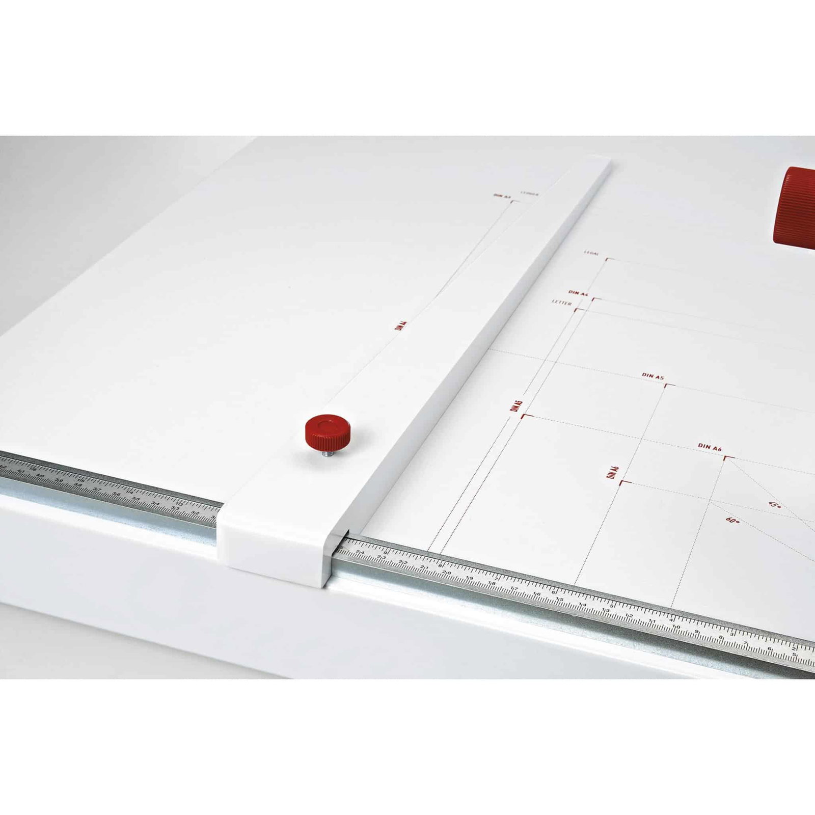 Die clevere Ausstattung, wie die DIN-Formateinteilung und Winkelmarkierungen auf dem Schneidetisch, erleichtert das präzise Zuschneiden ohne vorheriges Abmessen. Zusammen mit der individuell einstellbaren Handpressung und dem robusten feststehenden Messerschutz steht komfortablen und sicheren Schneidarbeiten nichts im Wege.
