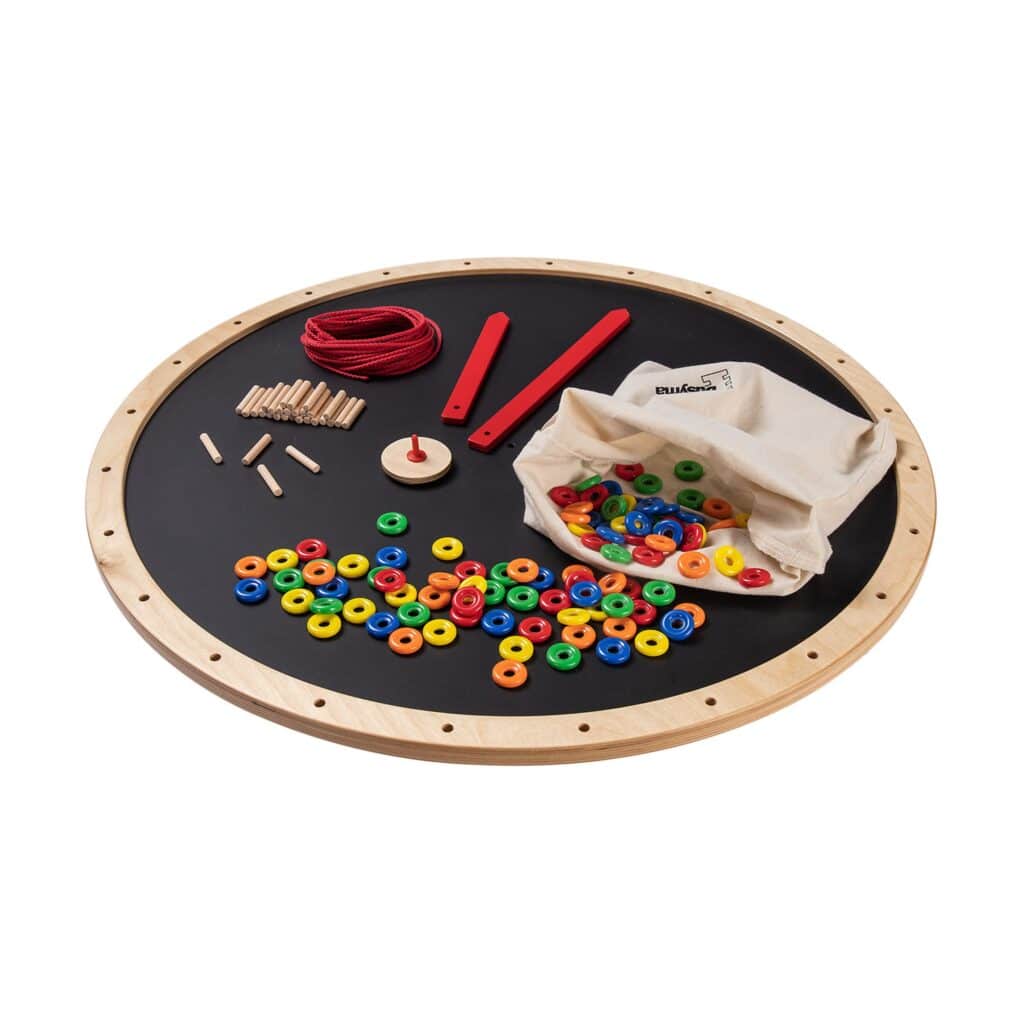 Das IdeenKarussell vereint Lernen, Kreativität und Feinmotorik in einem unverwechselbaren, multifunktionalen Spielgerät. Für Kinder ab 4 Jahren konzipiert, eröffnet es zahlreiche Möglichkeiten, sich aktiv und spielerisch mit Farben, Formen, Mengen oder Begriffen auseinanderzusetzen. Die drehbare, tafelbeschichtete Platte lässt sich mit einer Vielzahl von Materialien bestücken und ist flexibel einsetzbar – sei es im Kindergarten, in der Schule oder zu Hause. Mit Zeigern, Steckern, Ringen und einer strapazierfähigen Schnur können Kinder individuelle Aufgabenstellungen und kreative Szenarien gestalten. Die offen gehaltene Spielidee regt Fantasie und Problemlösungsfähigkeit gleichermaßen an.