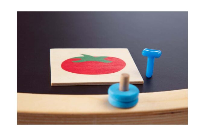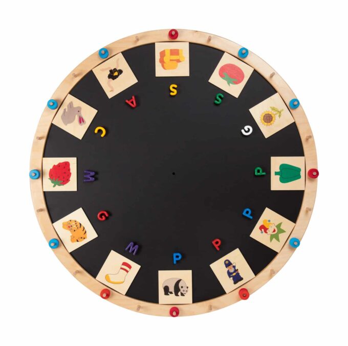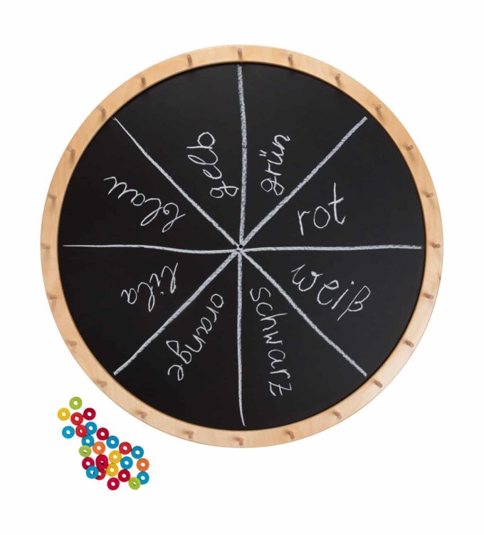 Das IdeenKarussell vereint Lernen, Kreativität und Feinmotorik in einem unverwechselbaren, multifunktionalen Spielgerät. Für Kinder ab 4 Jahren konzipiert, eröffnet es zahlreiche Möglichkeiten, sich aktiv und spielerisch mit Farben, Formen, Mengen oder Begriffen auseinanderzusetzen. Die drehbare, tafelbeschichtete Platte lässt sich mit einer Vielzahl von Materialien bestücken und ist flexibel einsetzbar – sei es im Kindergarten, in der Schule oder zu Hause. Mit Zeigern, Steckern, Ringen und einer strapazierfähigen Schnur können Kinder individuelle Aufgabenstellungen und kreative Szenarien gestalten. Die offen gehaltene Spielidee regt Fantasie und Problemlösungsfähigkeit gleichermaßen an.