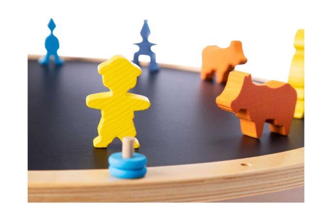 Gefertigt aus hochwertigem Multiplex-Holz und Kunststoff, überzeugt das IdeenKarussell mit Langlebigkeit und einem durchdachten Design. Es dient nicht nur als pädagogisches Werkzeug, sondern wird durch die Vielseitigkeit zu einem tollen Begleiter in der gezielten Förderung kognitiver, sprachlicher und feinmotorischer Fähigkeiten. Ob beim Markieren von Bereichen, beim Einteilen von Teilmengen oder bei der Erweiterung des Wortschatzes – das IdeenKarussell begeistert Kinder und Erwachsene gleichermaßen.
