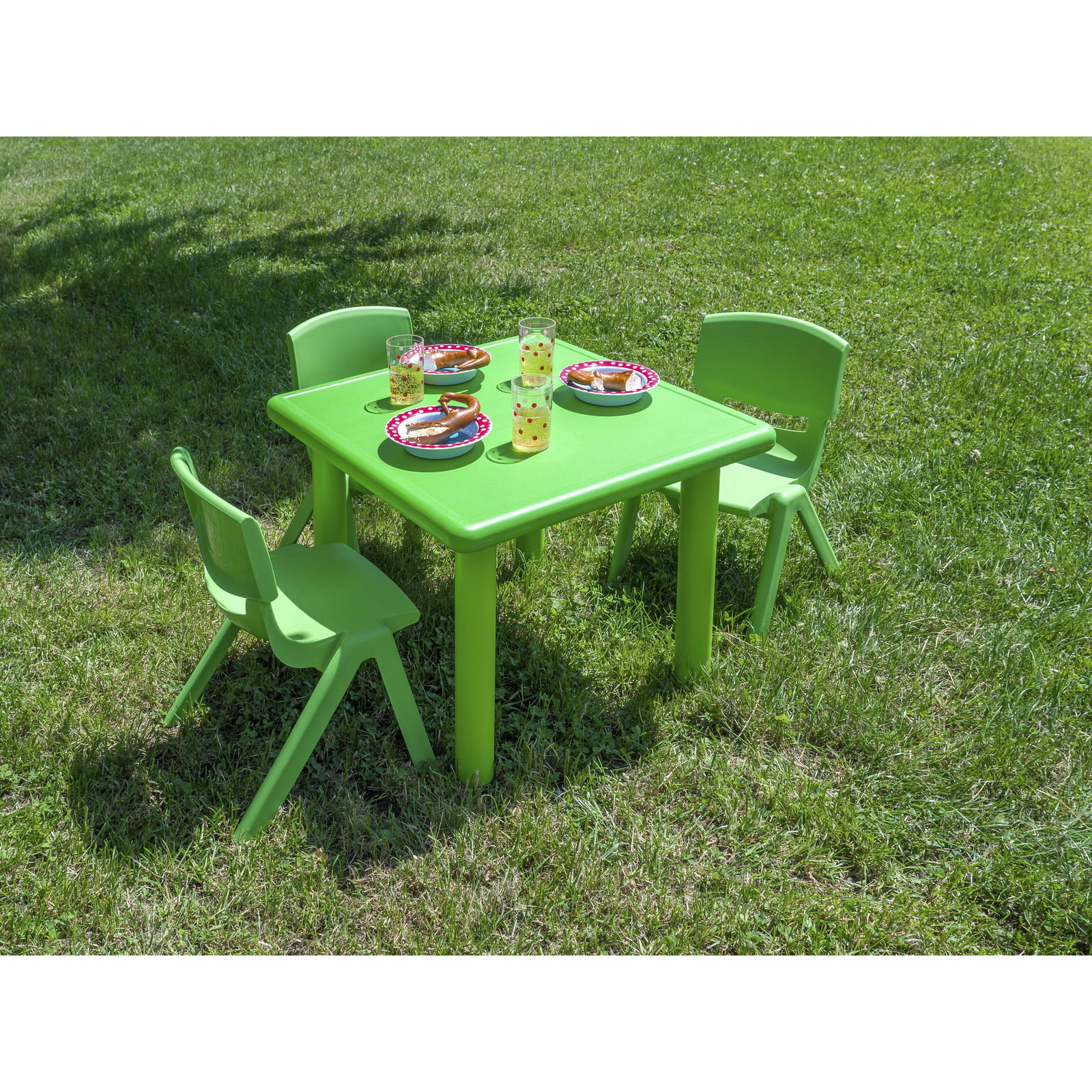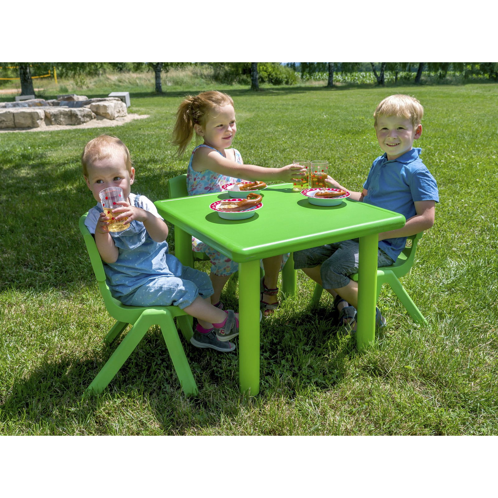 - Kinderleichte Handhabung dank des leichten Materials – die Sitzgruppe lässt sich schnell und einfach überallhin umstellen.