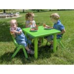 Mit ihrem durchdachten Design und der UV-beständigen Oberfläche ist diese Sitzgruppe die ideale Wahl für jede Umgebung. Die leicht verstellbaren Tischbeine gleichen Bodenunebenheiten aus und sorgen für maximale Stabilität – egal, ob der Tisch im Wohnzimmer, auf der Terrasse oder im Garten eingesetzt wird. Durch die Kombination aus kinderfreundlichen Proportionen, robusten Materialien und einfacher Handhabung wird diese Sitzgruppe sowohl für Kinder als auch für Eltern zum Favoriten!