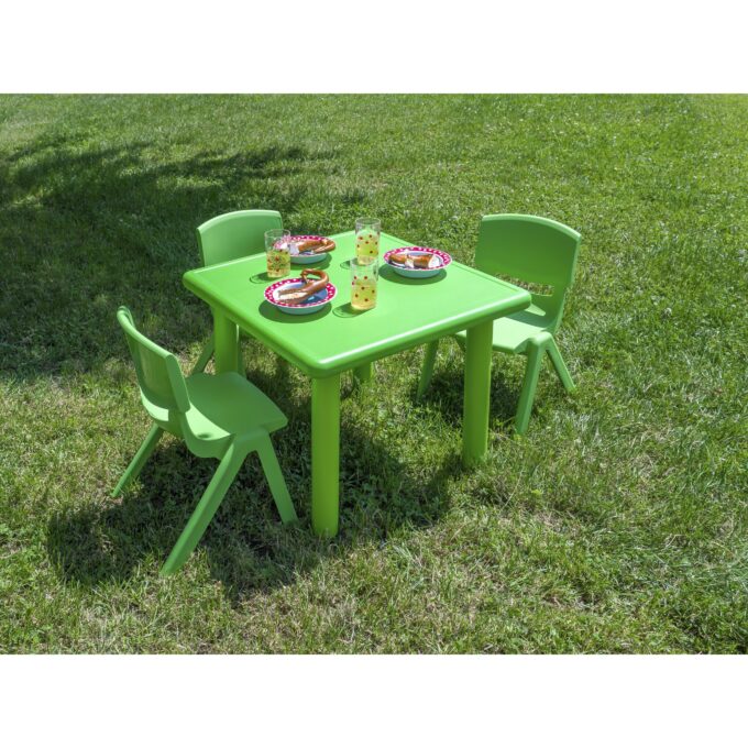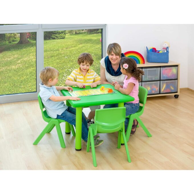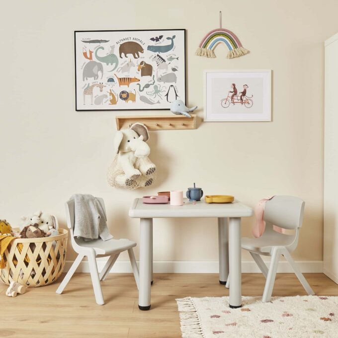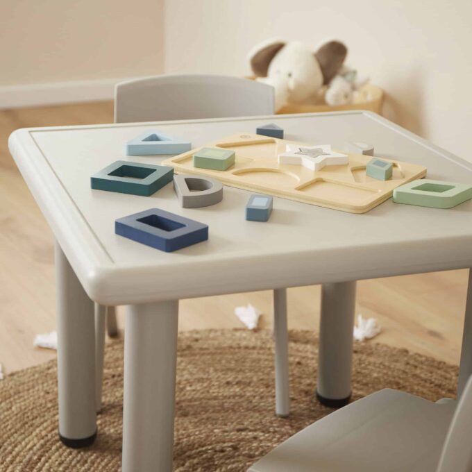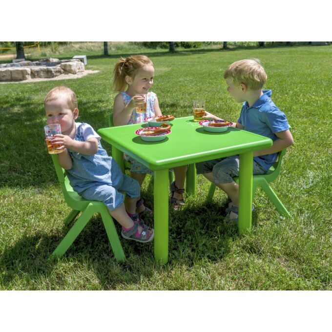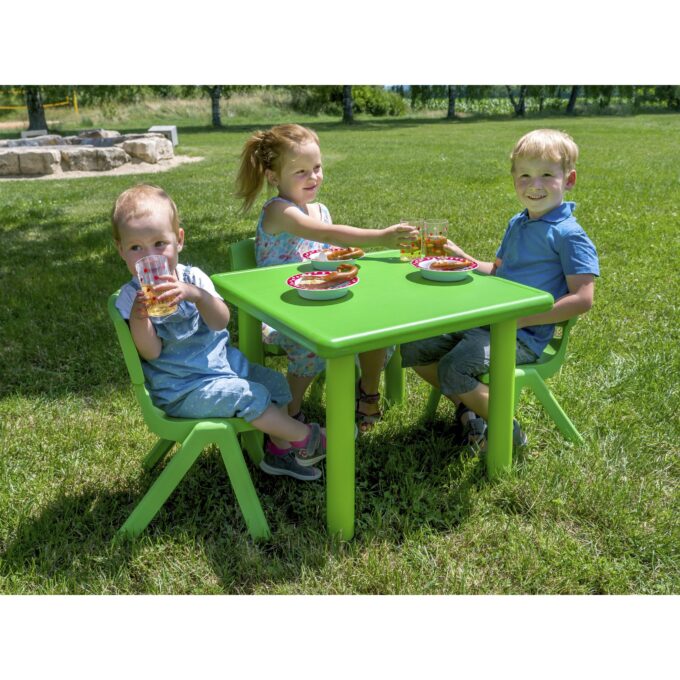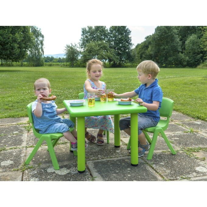 Die Indoor- & Outdoor-Sitzgruppe, bestehend aus einem Tisch und vier Stühlen, ist die perfekte Lösung, um Kindern im Alter von 2 bis 6 Jahren einen gemütlichen und funktionalen Platz zum Spielen, Malen, Basteln oder Essen zu bieten. Ob im Haus oder unter freiem Himmel – dieses vielseitige Set ermöglicht es, spontane Lern- und Spielorte zu schaffen, die sich dank des leichten und robusten Materials kinderleicht umstellen lassen.