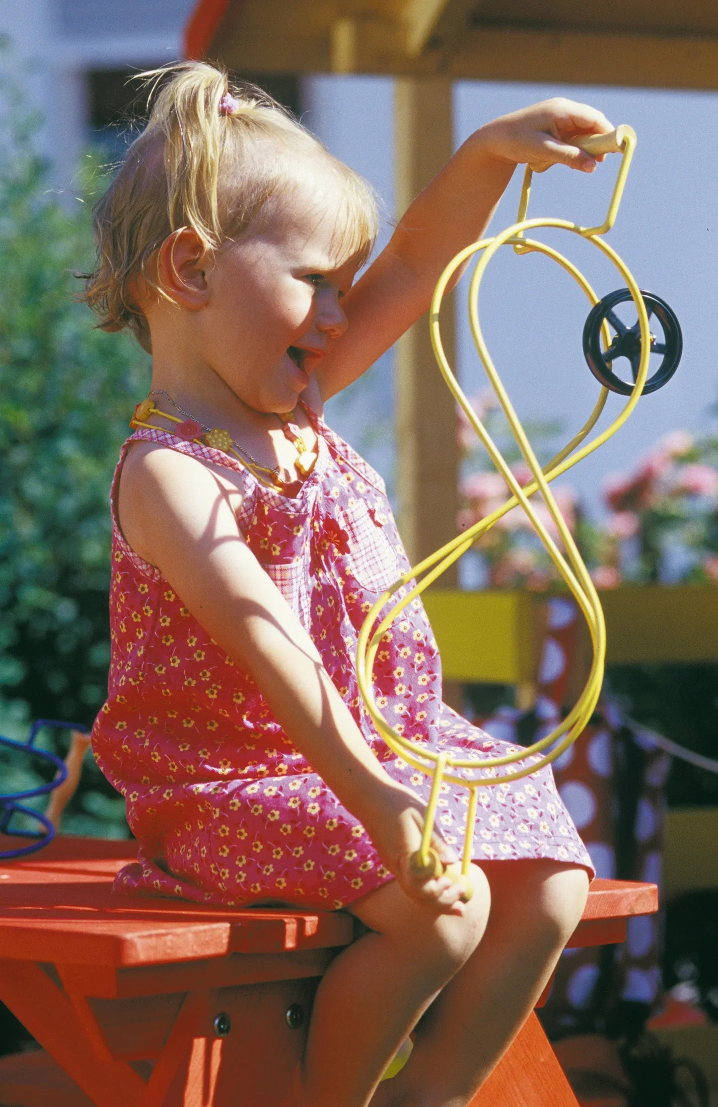 - Grobmotorik: Um das Rad richtig in Schwung zu bringen, muss oft der ganze Arm oder Oberkörper eingesetzt werden. Die fließenden Bewegungen fördern die Beweglichkeit und das Zusammenspiel großer Muskelgruppen.