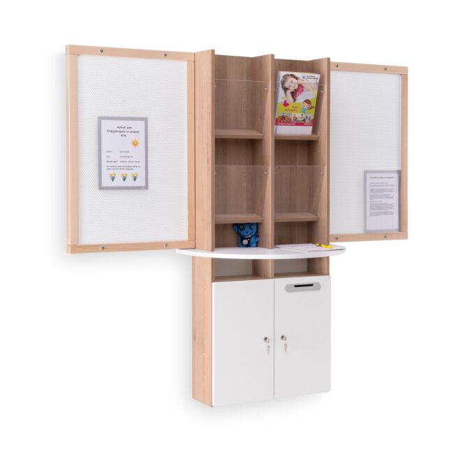 - Optimale Sichtbarkeit: Durch die durchdachte Anordnung sind alle Informationsmaterialien auf einen Blick erfassbar und leicht zugänglich.