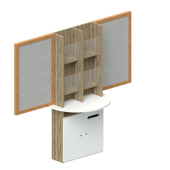 Entdecken Sie die perfekte Verbindung von funktionaler Eleganz und praktischem Nutzen mit dem Infocenter 2, einer durchdachten Kommunikationslösung, die höchste Ansprüche an Design und Funktionalität erfüllt. Diese innovative Informationswand verwandelt jeden Empfangsbereich, jedes Foyer oder jeden öffentlichen Raum in eine professionelle Servicestelle, die gleichzeitig informiert, organisiert und Feedback sammelt. Mit seiner harmonischen Kombination aus vier großzügigen Prospekthaltern, praktischer halbrunder Schreibplatte und intelligentem Stauraumsystem schafft das Infocenter 2 eine zentrale Anlaufstelle für alle Kommunikationsbedürfnisse. Der hochwertige Korpus aus 19 mm Spanplatten bietet vielfältige Dekorvariationen und fügt sich harmonisch in jede Arbeitsumgebung ein – von modernen Bürolandschaften bis hin zu klassischen Verwaltungsgebäuden.