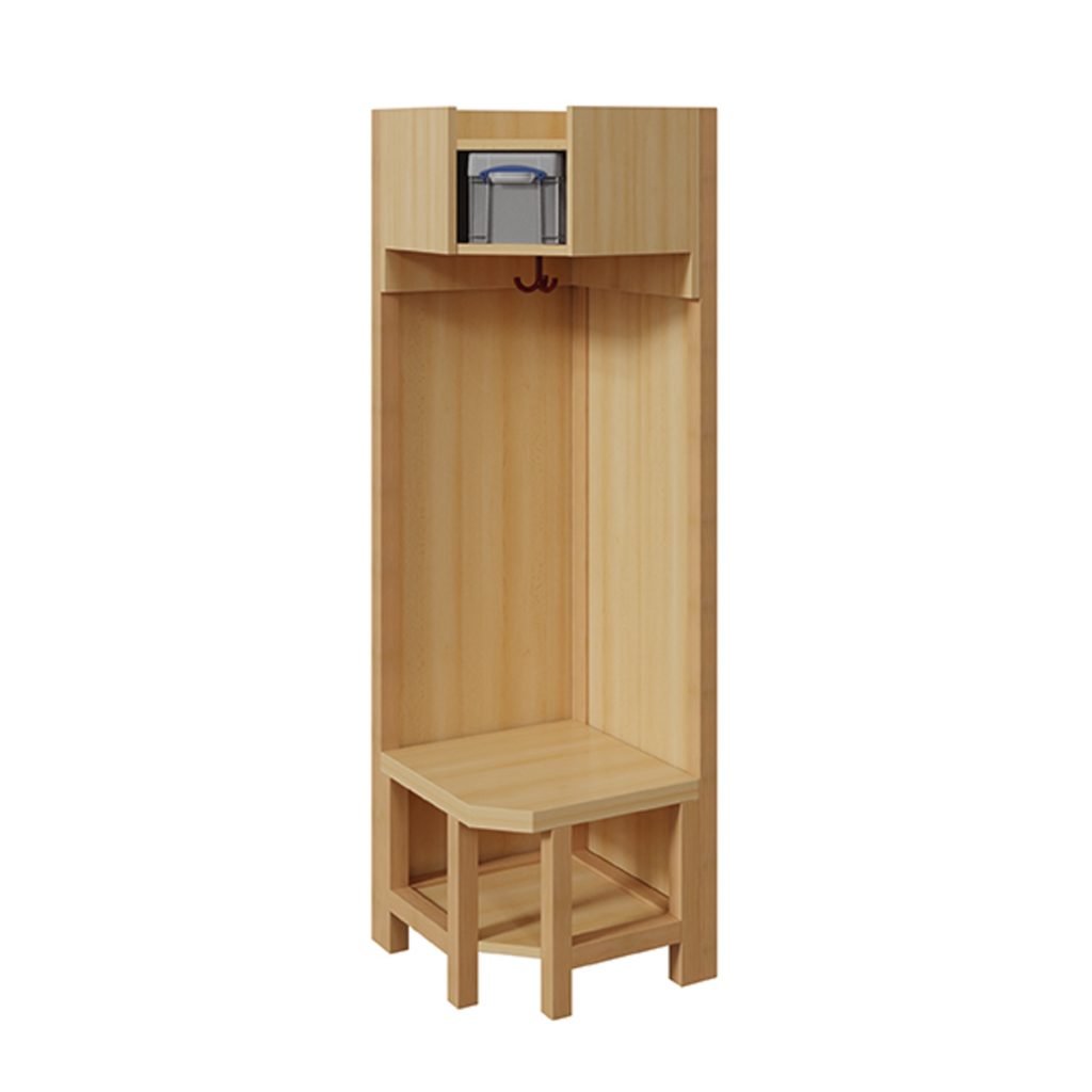 Schaffen Sie eine durchgehende, organisierte und einladende Garderobenlandschaft, die jeden Winkel nutzt. Unsere Innenecke-Garderobe ist die perfekte Ergänzung zu unseren Komplettgarderoben und wurde speziell entwickelt, um Garderobenbereiche elegant um 90 Grad zu führen. Statt einer ungenutzten, leeren Ecke entsteht so ein nahtloser Übergang und zusätzlicher, wertvoller Stauraum. Mit ihrer robusten Paneelrückwand und der praktischen Ablagefläche fügt sich diese Ecklösung harmonisch in das Gesamtbild ein und sorgt für ein aufgeräumtes, durchdachtes Ambiente in Krippe, Kita oder Hort.