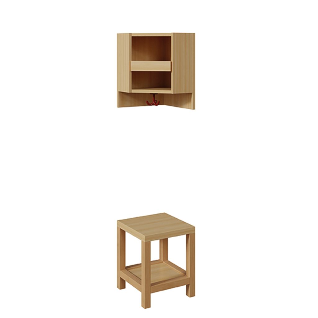 Schreibe die erste Rezension für „Innenecke-Garderobe mit doppelter Ablage und Bilderleiste komplett – zweiteilig ohne Stütze“