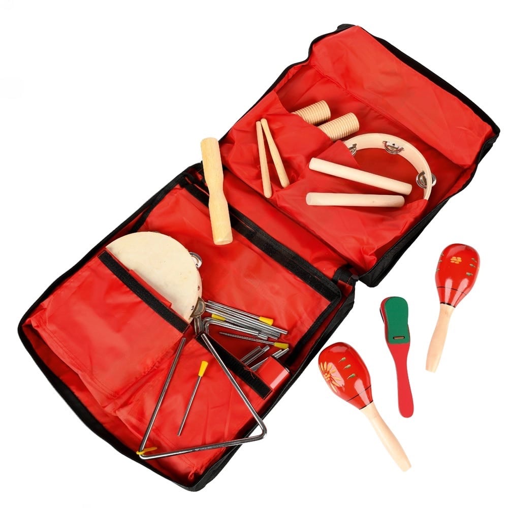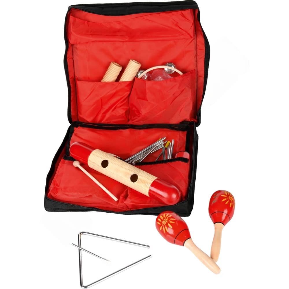 Die Instrumentensammlung kommt in einer praktischen Stofftasche und umfasst eine Vielzahl an Musikinstrumenten, die den Rhythmus und die Klänge zum Leben erwecken: