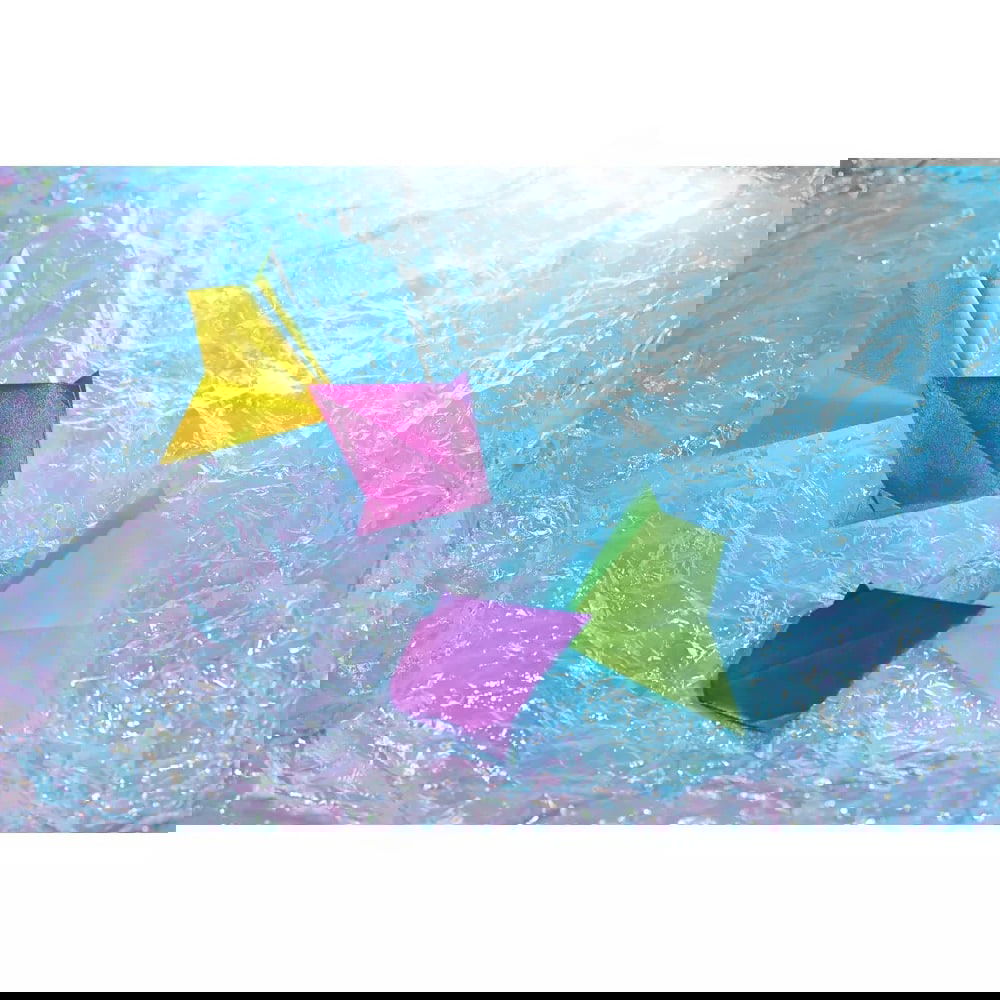 Verleihen Sie Ihren Bastelprojekten einen Hauch von Magie mit unserem irisierenden kristallgeprägten Papier! Dieses exquisite Set enthält 50 wunderschöne Papierquadrate in der Größe 14 x 14 cm, die in wechselnder Farboptik schimmern und funkeln. Mit diesem besonderen Papier lassen sich eindrucksvolle Figuren wie Tiere, Blumen und viele andere kreative Ideen erschaffen.