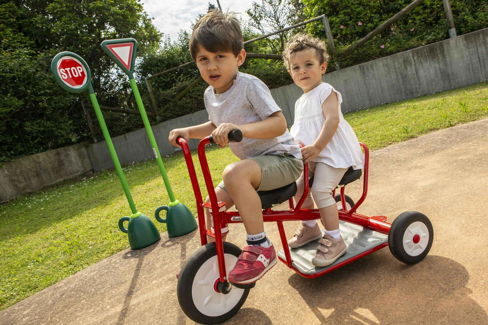 - Das Zweisitzer-Dreirad für Kindergärten entspricht den europäischen Spielzeugsicherheitsvorschriften (EN 71, Teile 1, 2, 3);