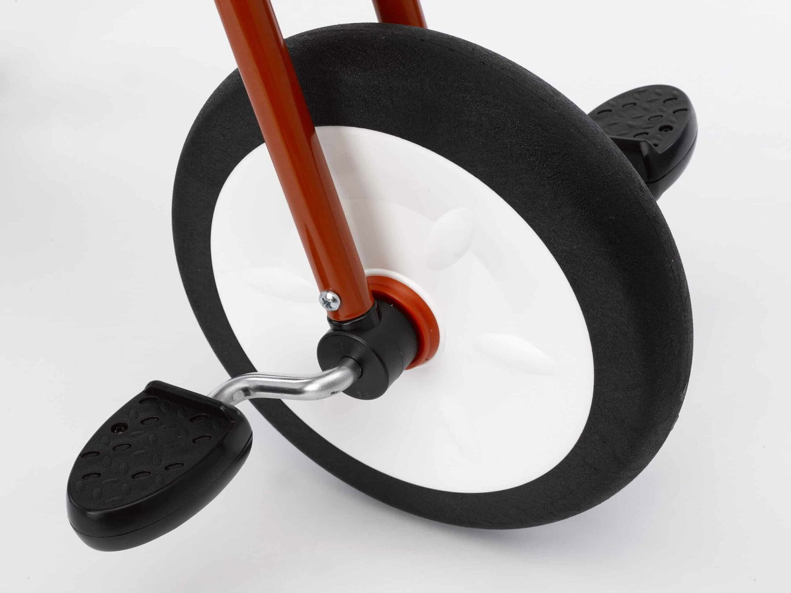 - Am Vorderrad eingesetzte Pedale mit rutschfester Oberfläche;