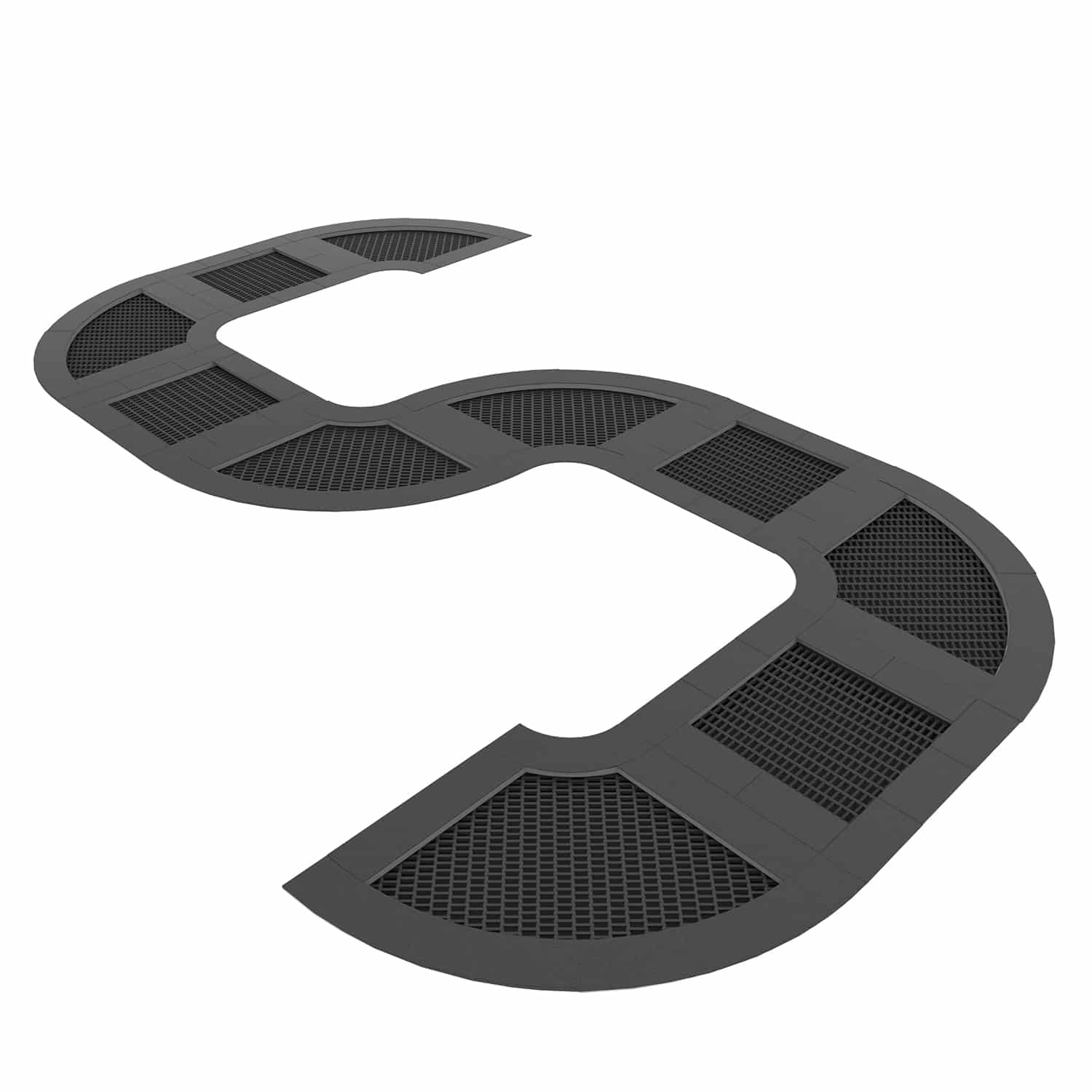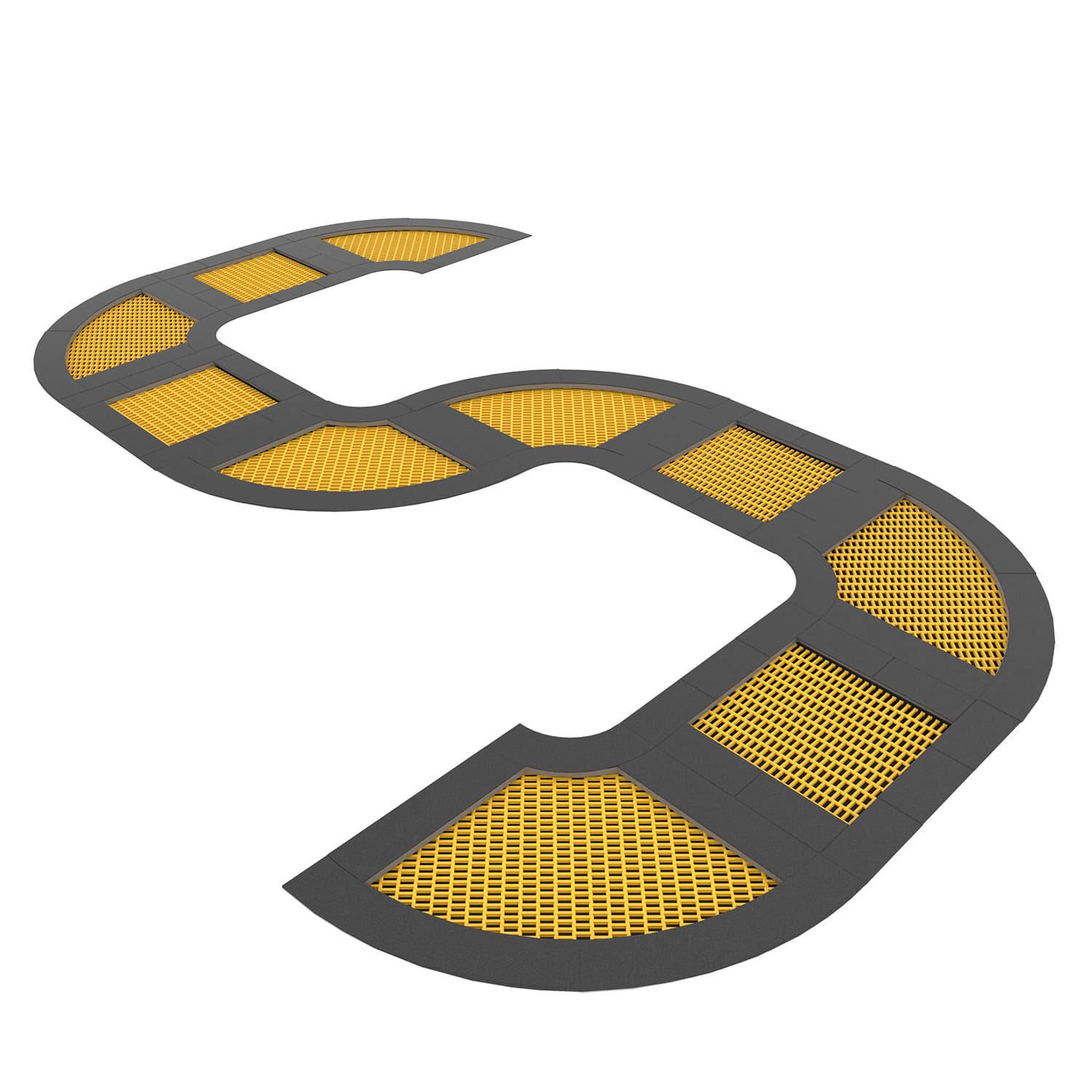 - Konstruktion aus feuerverzinktem Stahl, unter der Bodenoberfläche montiert, Die Kanten der Konstruktion mit einem Gummirand bedeckt – Oberfläche farbiges SBR auf den Rahmen geklebt,
