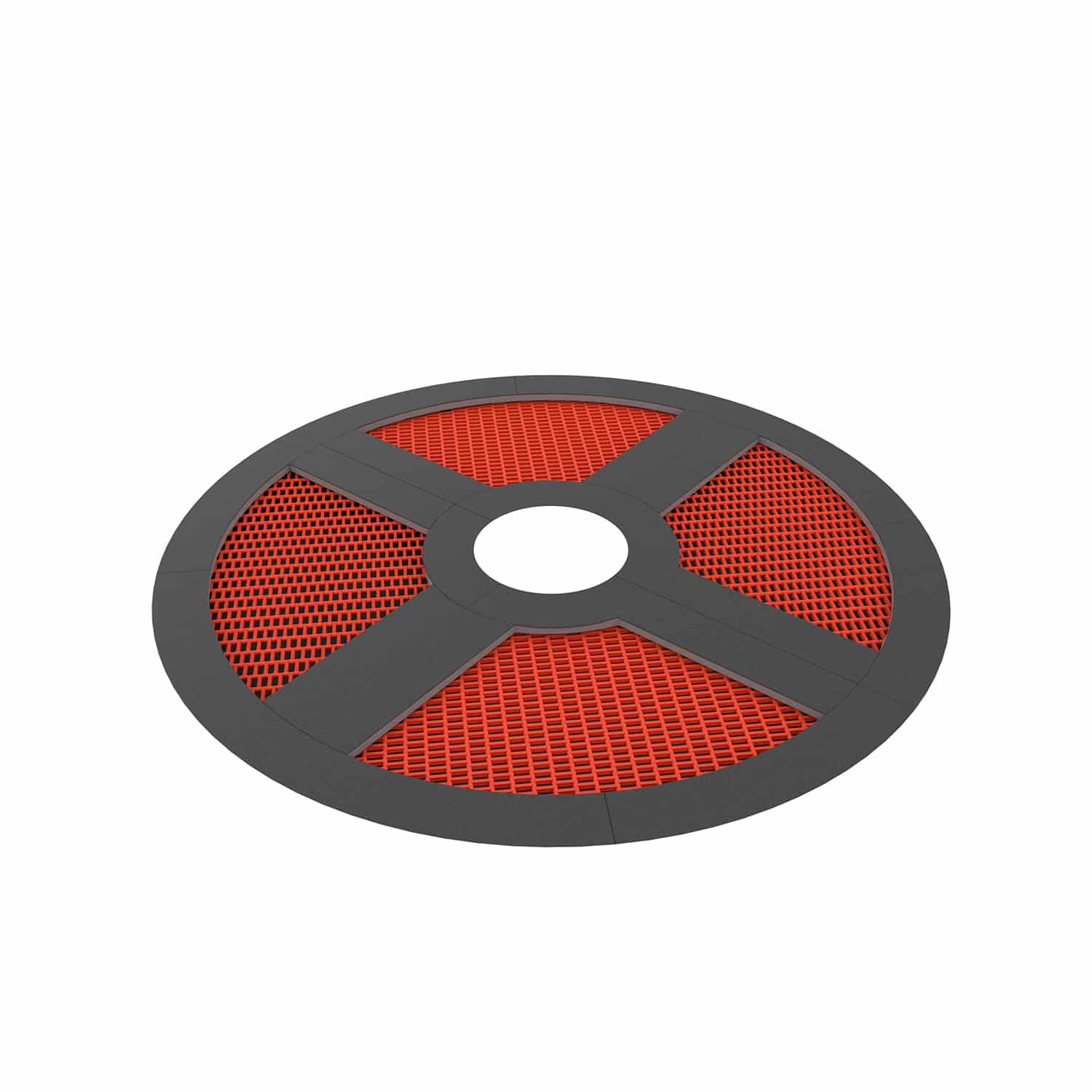 - Konstruktion aus feuerverzinktem Stahl, unter der Bodenoberfläche montiert, Die Kanten der Konstruktion mit einem Gummirand bedeckt – Oberfläche farbiges SBR auf den Rahmen geklebt,