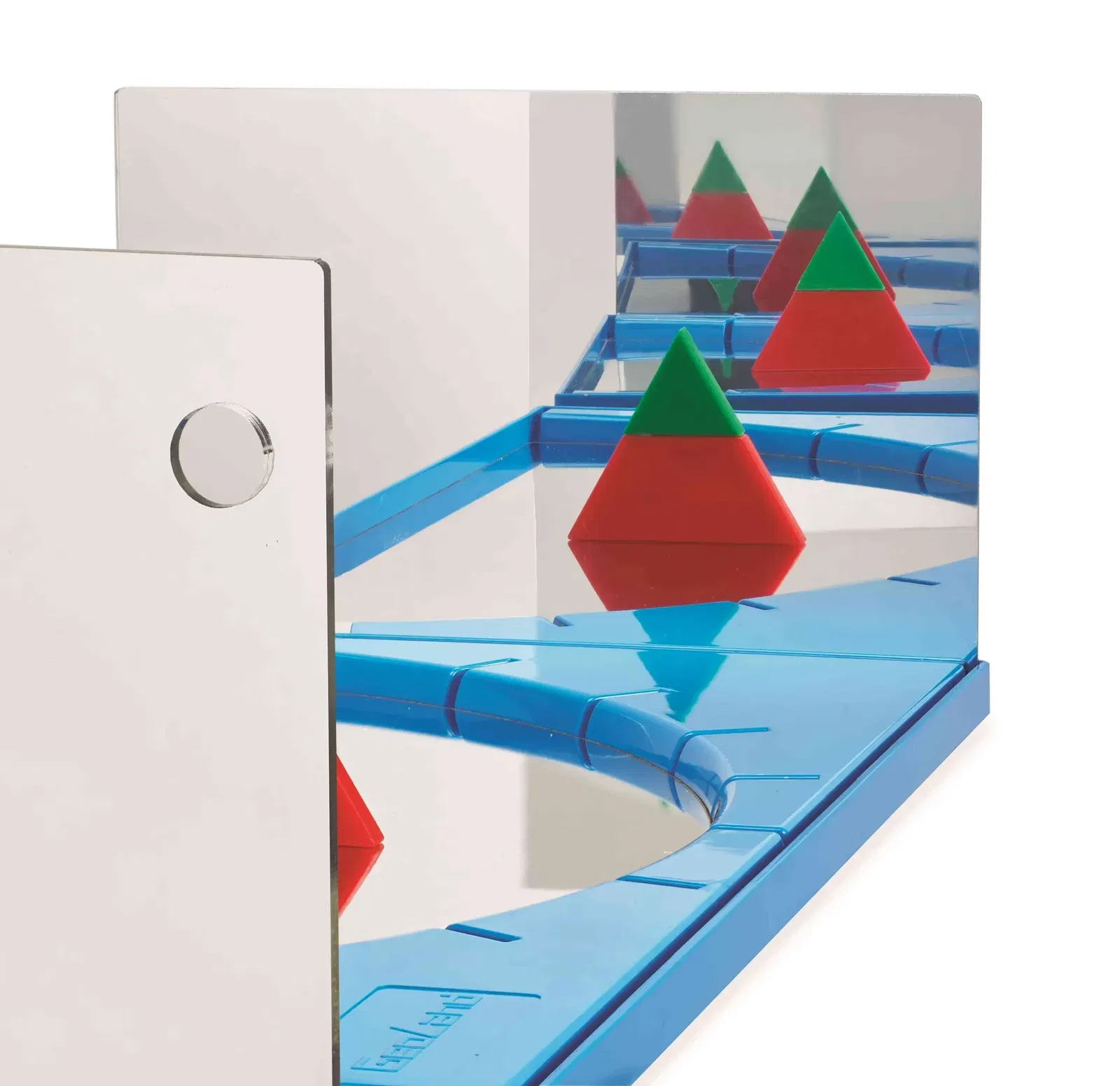 Symmetrie ist ein Grundprinzip der Mathematik. Mit diesem Set können Kinder das abstrakte Konzept der Spiegelung buchstäblich be-greifen. Sie lernen durch Experimentieren, wie der Winkel zwischen den Spiegeln die Anzahl der Reflexionen beeinflusst (360° geteilt durch den Winkel), und entwickeln so ein tiefes, intuitives Verständnis für geometrische Zusammenhänge. - Förderung von Kreativität und Vorstellungskraft