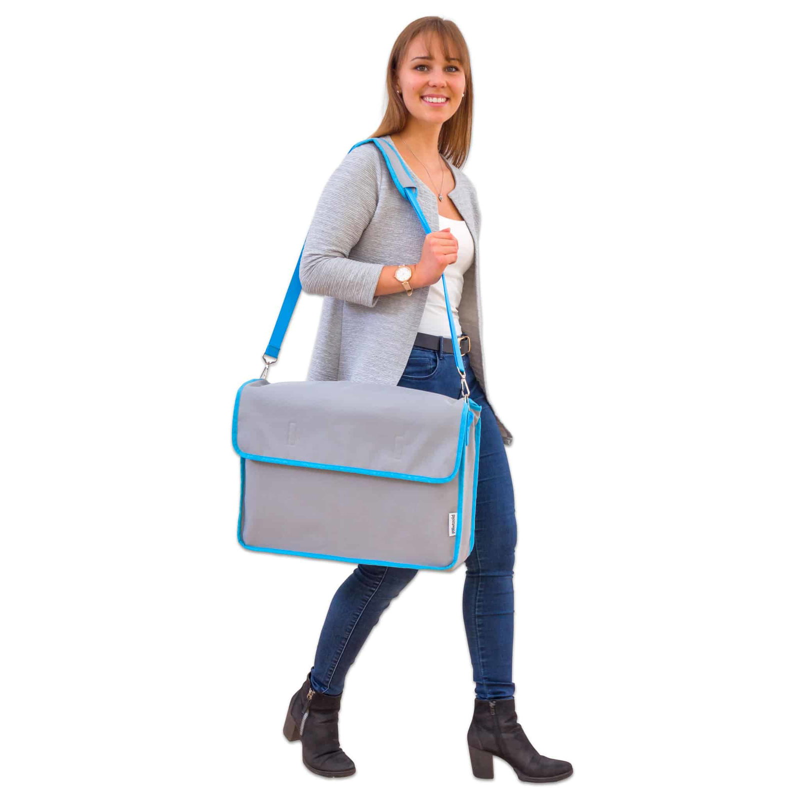 Die Kamishibai-Tasche vereint Design und Komfort. Sie lässt sich sowohl am praktischen Henkel tragen als auch bequem über die Schulter hängen. Der verstellbare Tragegurt ist mit einem Schulterpolster ausgestattet, um den Tragekomfort auch bei längeren Wegen zu erhöhen. So können Sie die Tasche individuell an Ihre Körpergröße anpassen.