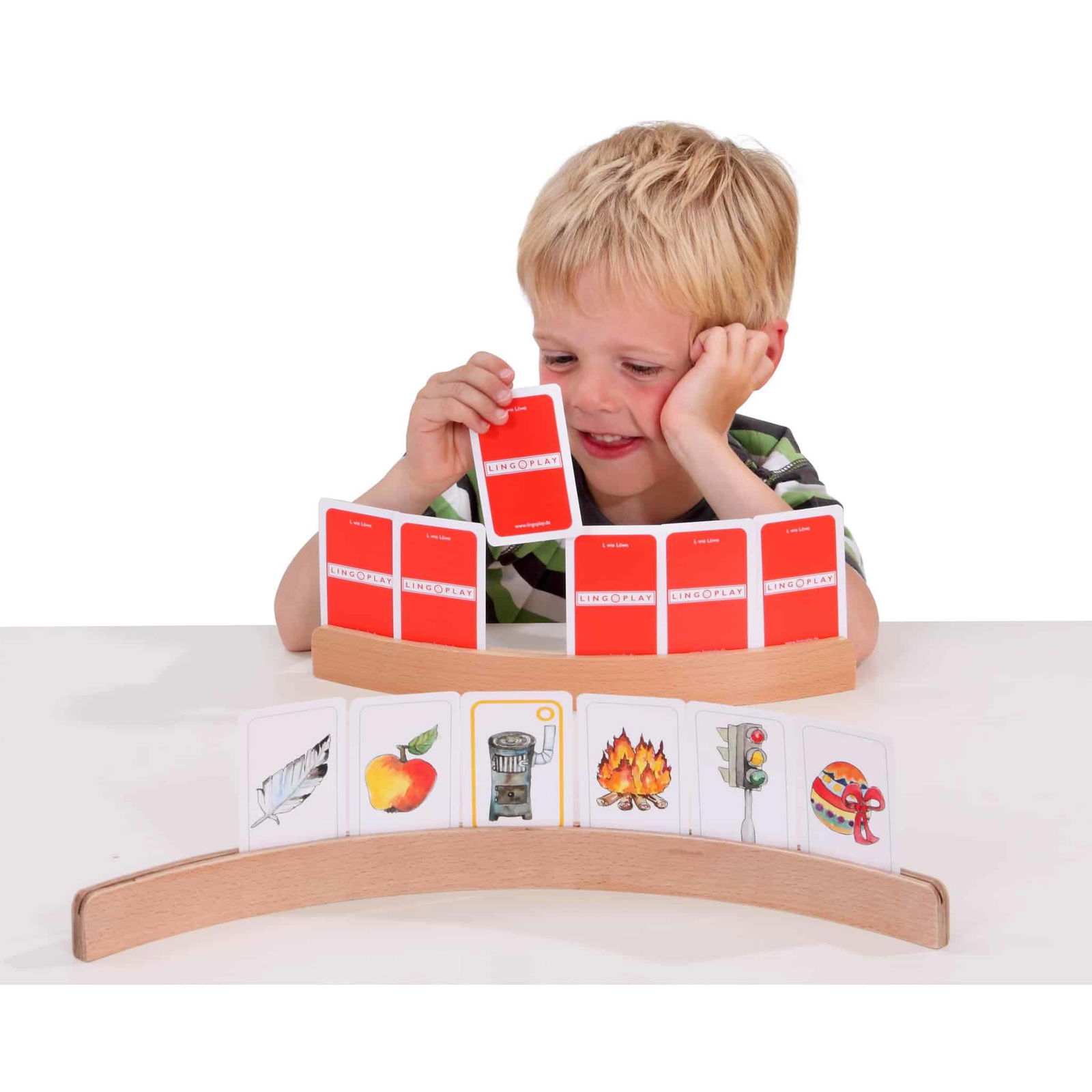 Der Kartenhalter ist nicht nur ideal für klassisches Kartenspielen, sondern eignet sich auch hervorragend für das Aufstellen von Bildkarten, wie beispielsweise „Geschichten mit Moa“. So können Kinder die Lernkarten stets gut im Blick behalten und die Bildergeschichte selbstständig nacherzählen oder aufmerksam verfolgen. Das fördert nicht nur das Spielvergnügen, sondern auch die Sprache und Kreativität der Kleinen.
