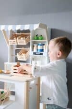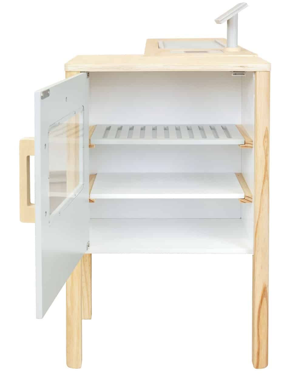 Eröffnen Sie ein Universum voller Fantasie und entdecken Sie ein Spielzeug, das so vielseitig ist wie die Träume Ihres Kindes! Unser 2-in-1-Wunder „fresh“ vereint das Beste aus zwei klassischen Rollenspielwelten: einen voll ausgestatteten Kaufladen und eine moderne Kinderküche. Ob als belebter Marktstand, schickes Kiosk, gemütlicher Imbiss oder kreative Gourmetküche – dieses modulare Spielcenter passt sich jeder Idee an. Im angesagten, nordischen Design mit viel sichtbarem Holz ist es nicht nur ein pädagogisch wertvolles Spielzeug, das zurecht die „spiel gut“-Auszeichnung trägt, sondern auch ein stilvoller Blickfang. Nach dem Spielen lassen sich die Elemente clever zusammenschieben, was „fresh“ zur perfekten Lösung für jedes Kinderzimmer macht.