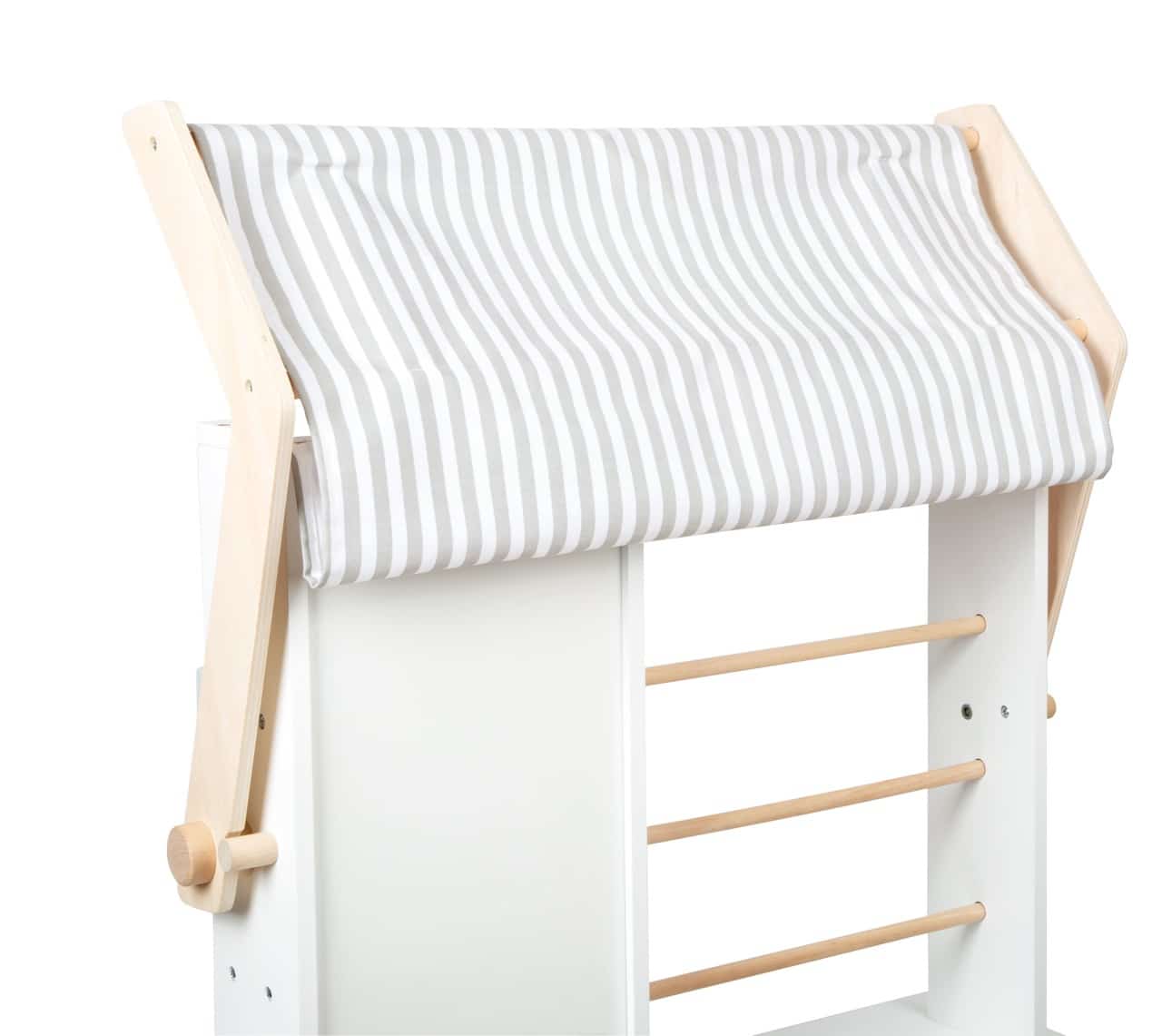 - Modernes Design und hochwertige Materialien: Die klare, nordische Ästhetik mit einem hohen Anteil an sichtbarem Holz und der abnehmbare Markisen-Bezug machen dieses Spielcenter zu einem echten Schmuckstück, das sich harmonisch in moderne Wohnräume einfügt.