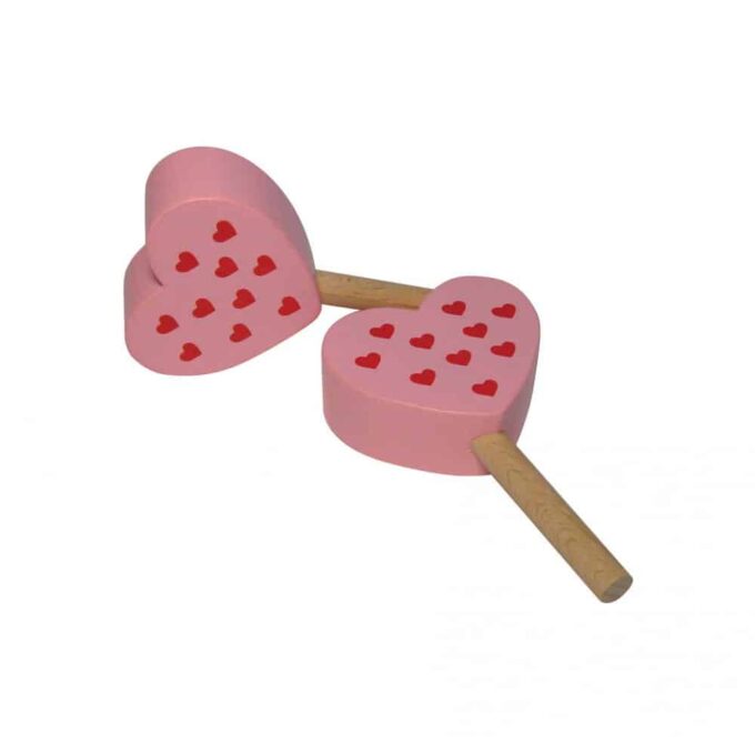 sahniges Himbeereis mit aufgedruckten fruchtigen Himbeerherzchen aus Holz zum Spielen. 5 Stück
