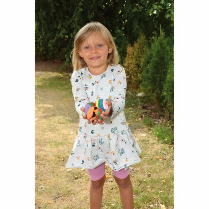 - Robustes Material: Die Kombination aus strapazierfähiger Polyesterwolle und langlebigem Kunststoffgranulat macht die Bälle widerstandsfähig gegen Tritte und Stürze. Sie behalten ihre Form, ohne dabei „lasch“ zu wirken.
