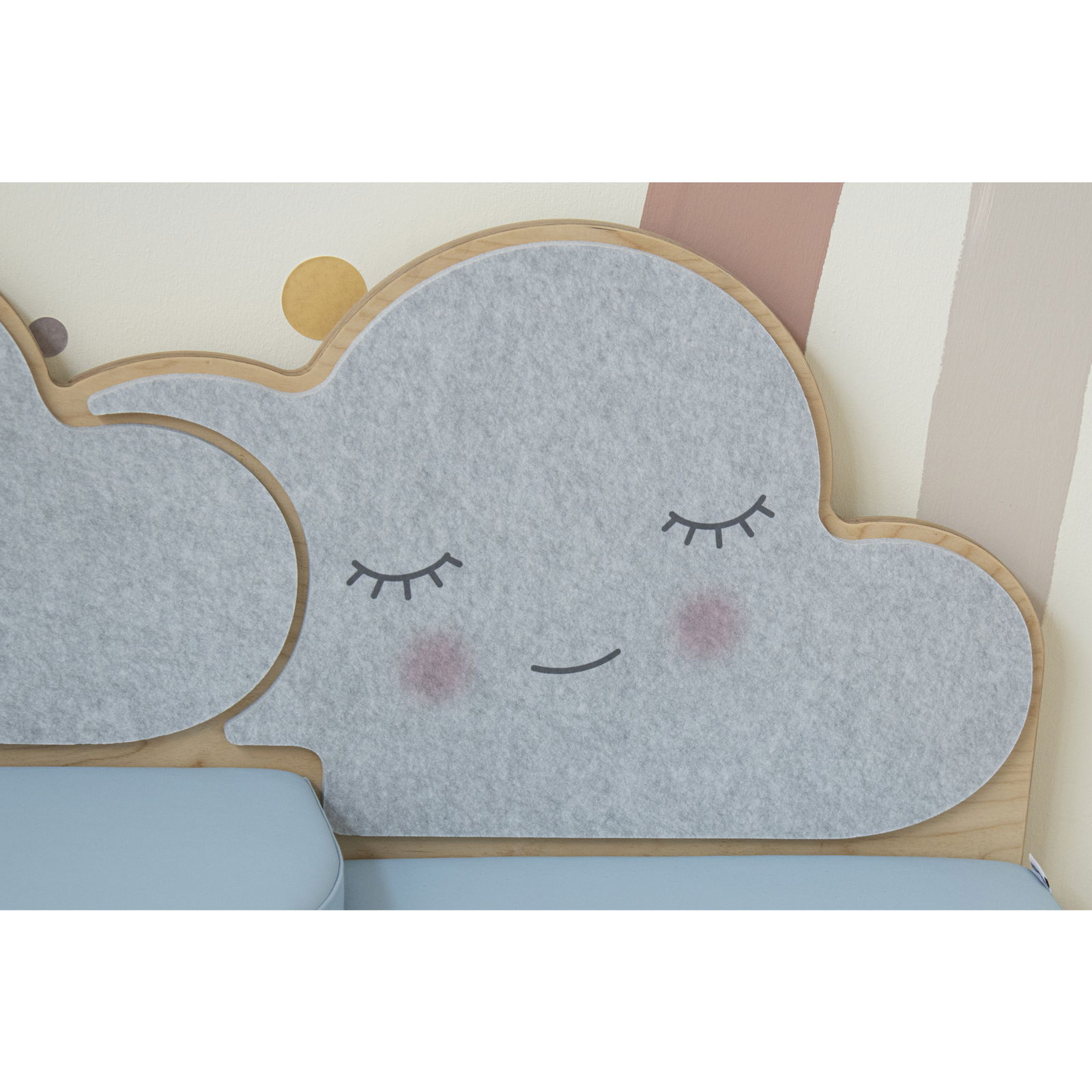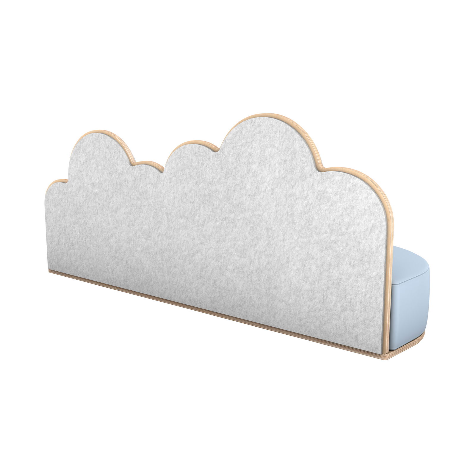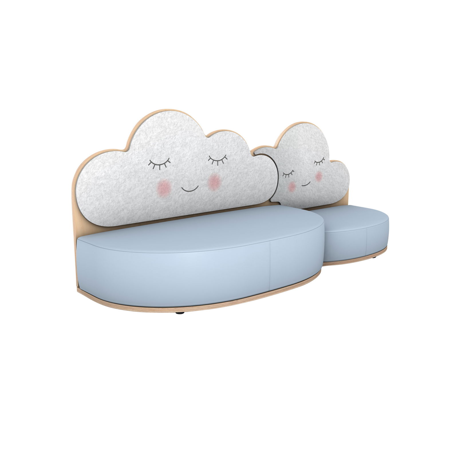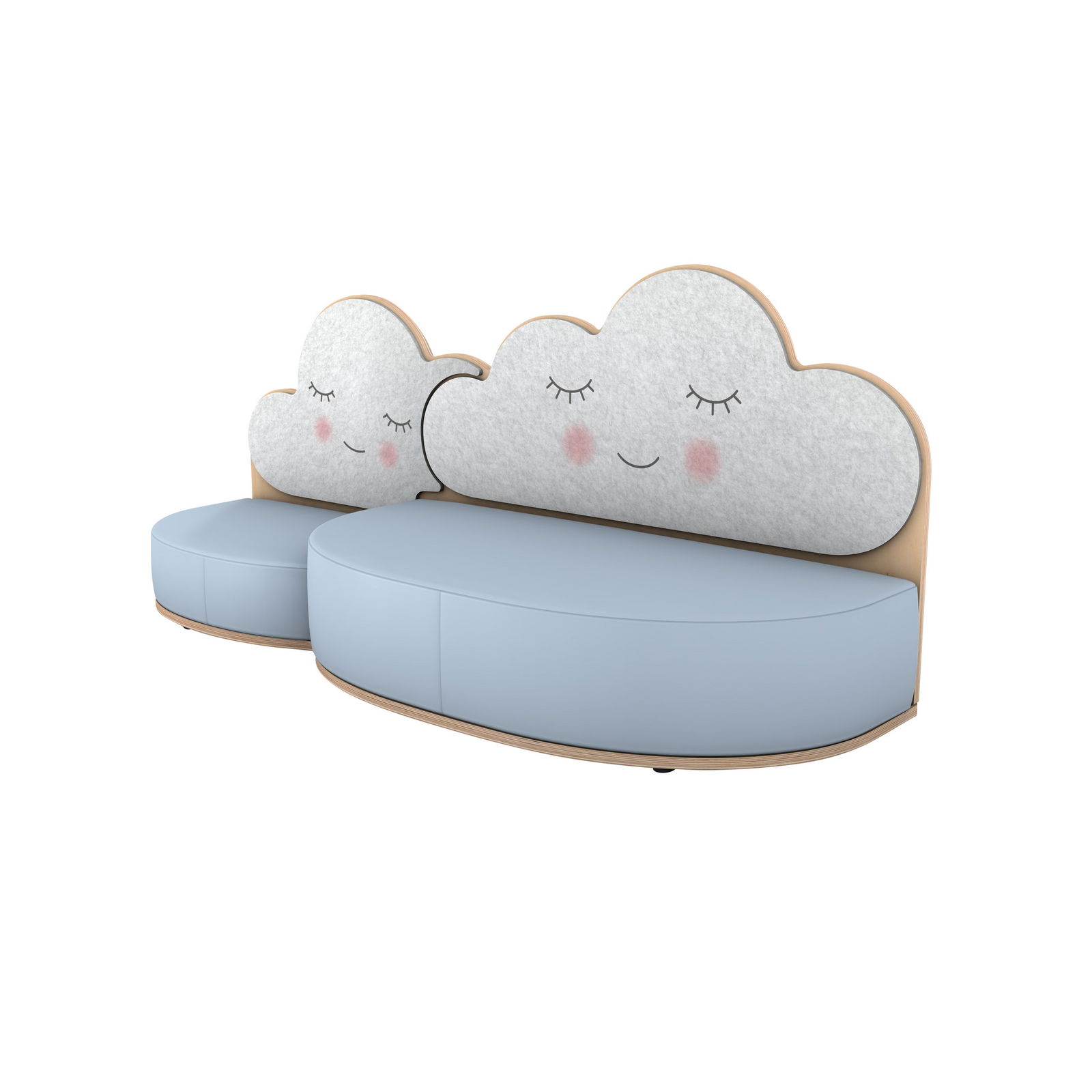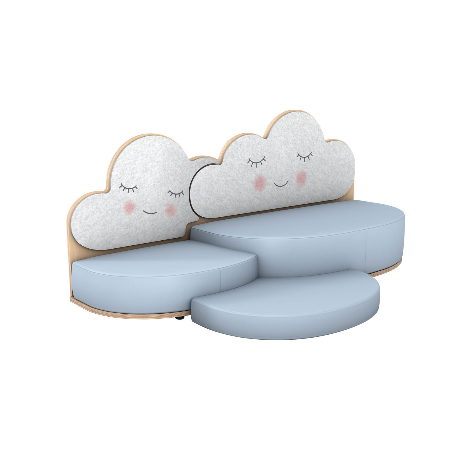 Bringen Sie Leichtigkeit und Ruhe in den oft hektischen Alltag von Kindertagesstätten und Schulen. Das Kinder-Akustiksofa „Wolke“ mit zwei Ebenen ist weit mehr als nur ein Sitzmöbel – es ist eine Einladung zum Träumen, Entdecken und Entspannen. Mit seiner charakteristischen Rückwand in Form einer freundlich lächelnden Wolke zaubert es sofort eine positive Atmosphäre in jeden Gruppenraum. Die sanfte Farbgebung in Blau, Weiß und Naturtönen wirkt beruhigend und fügt sich harmonisch in moderne Raumkonzepte ein.