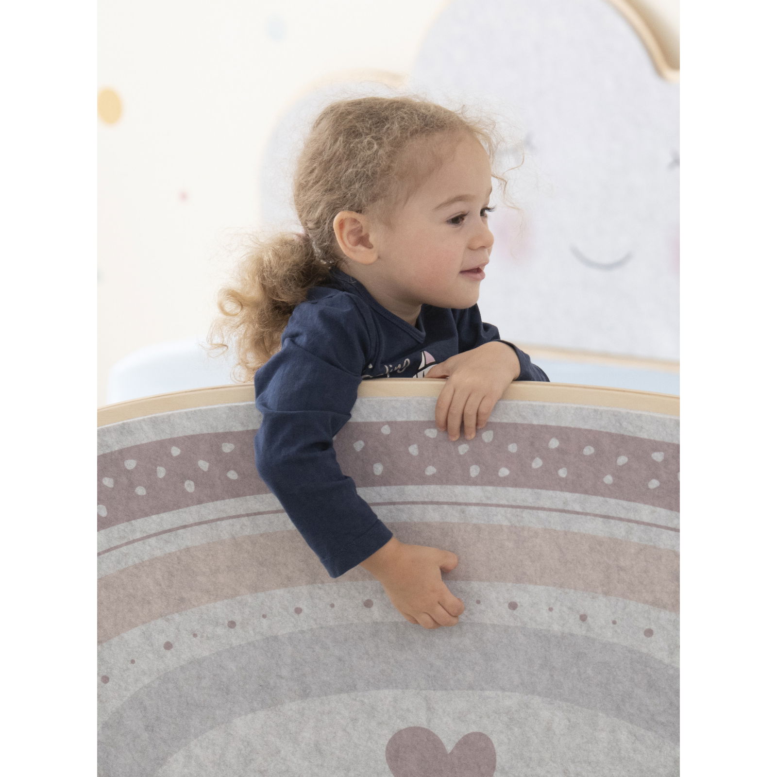Verwandeln Sie jeden Gruppenraum in eine Oase der Ruhe und des kreativen Spiels mit der Kinder-Akustiksofakombi „Regenbogen“. Dieses Möbelstück ist weit mehr als nur ein Sofa – es ist eine durchdachte Spiel- und Ruhelandschaft auf drei Ebenen, die Kinder zum Entspannen, Lesen und Toben einlädt. Das zauberhafte Design mit dem dezenten Regenbogen-Muster und den harmonischen Farben fügt sich stilvoll in jede Einrichtung ein und schafft sofort eine warme, einladende Atmosphäre.