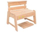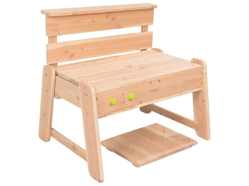 - Hergestellt aus: HOLZ (Tisch) und biobasierter KUNSTSTOFF (Behälter).
