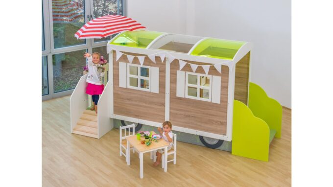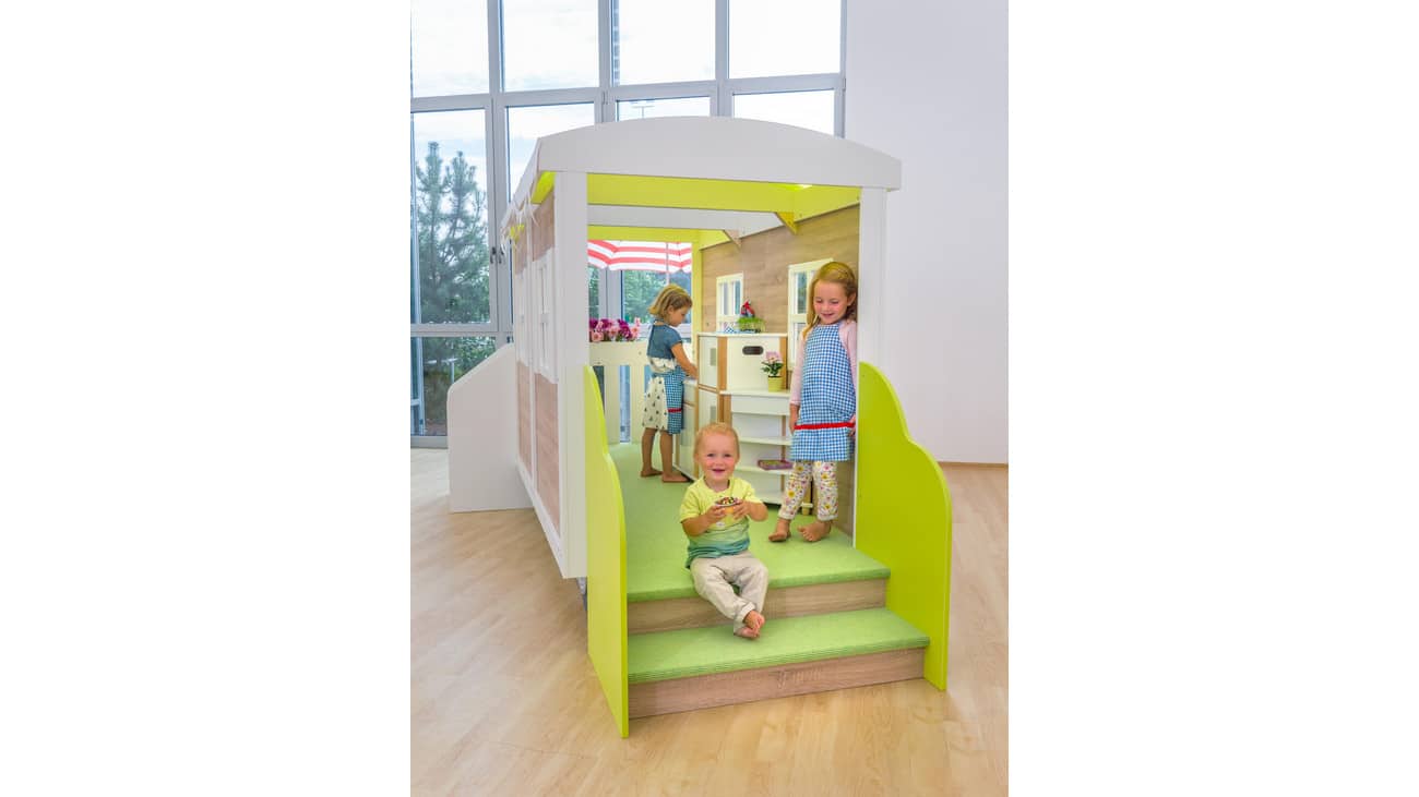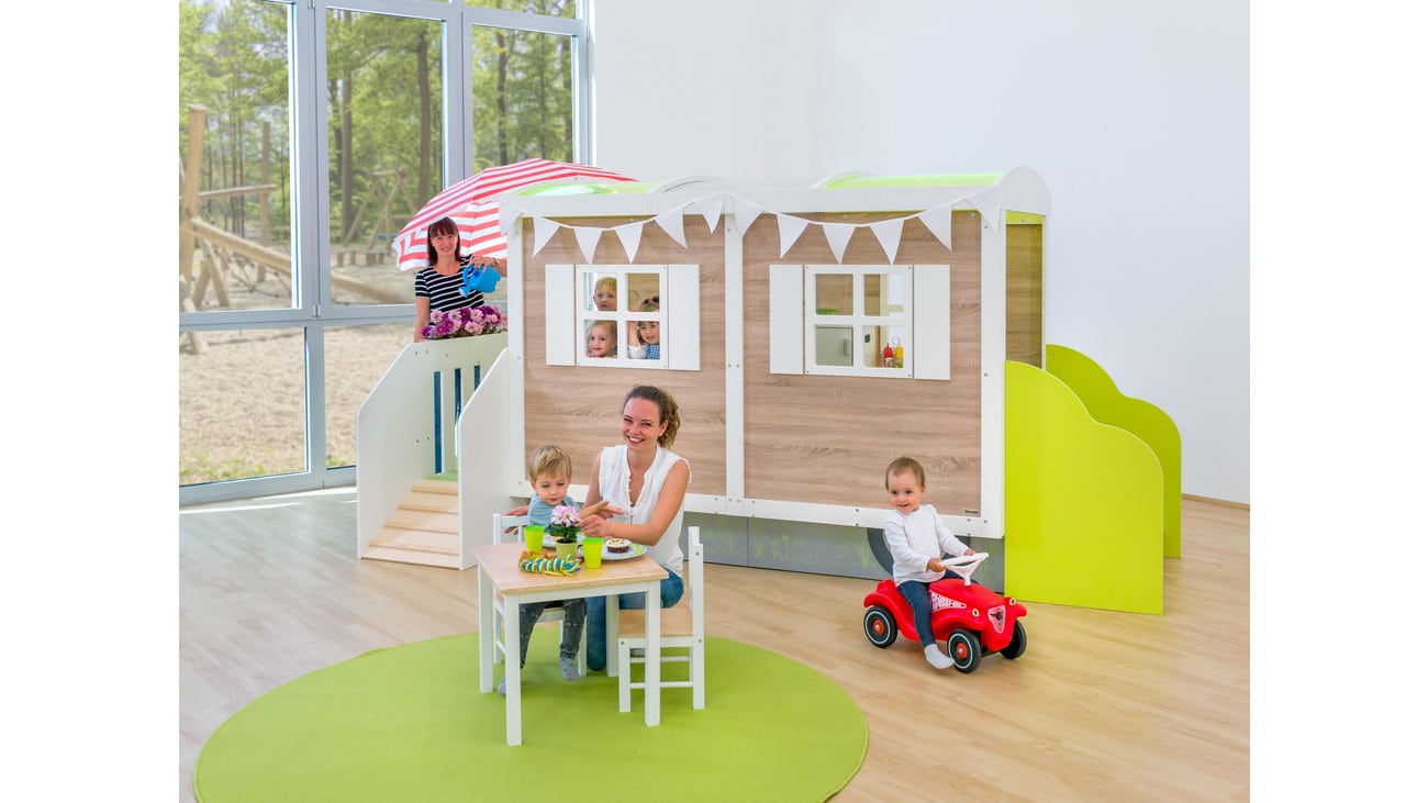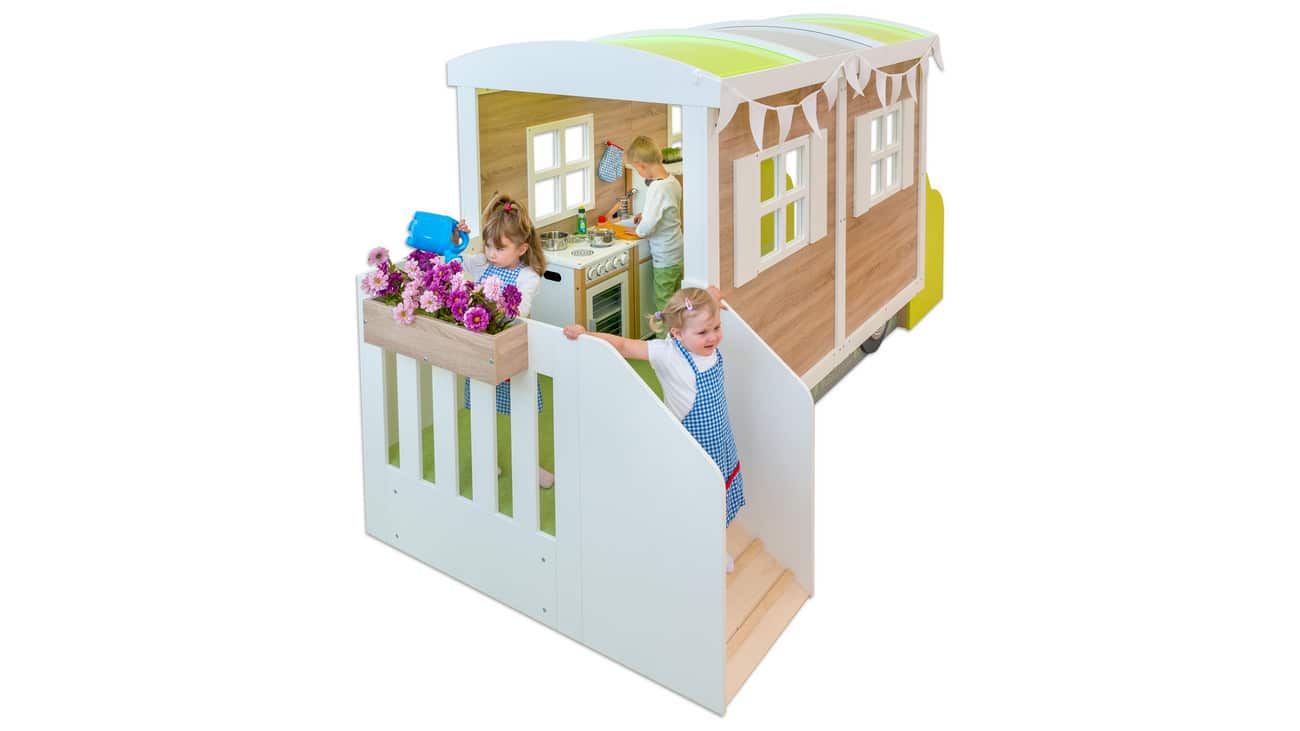 Der EduCasa Kinder-Bauwagen ist der perfekte Raum für kleine Kochfans, Puppeneltern, Leseratten und Kuschelbedürftige! Ob als gemütliche Küche, als Puppenhaus oder als Leseecke – was auch immer die Kinder sich vorstellen, der Bauwagen passt sich ihren Ideen an. Durch die flexible Einrichtung bleibt er immer spannend und lädt die Kinder ein, immer wieder neue Spielwelten zu erschaffen.