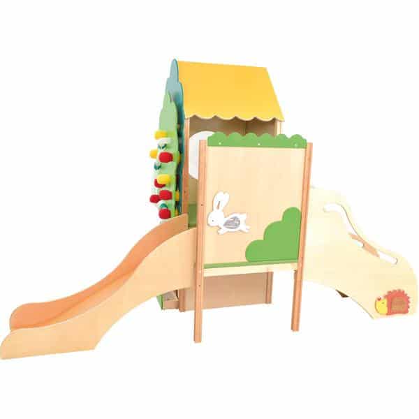- Dieses Baumhaus bietet eine zusätzliche Attraktion und gleichzeitig einen ganz schnellen Abgang – über die Rutsche.