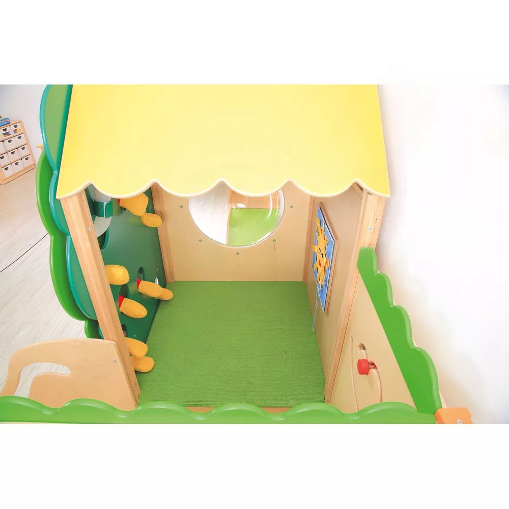 Holen Sie sich das Gefühl von Freiheit und Abenteuer direkt in den Gruppenraum! Das Baumhaus ohne Rutsche ist weit mehr als ein einfaches Klettergerüst; es ist eine liebevoll gestaltete Erlebniswelt, die Kinderherzen höher schlagen lässt. Normgerecht nach EN 1176 gefertigt, bietet dieses Indoor-Spielgerät Sicherheit und Spielspaß auf höchstem Niveau. Über eine stabile Treppe erklimmen die kleinen Entdecker ihr Reich, in dem es an jeder Ecke etwas Neues zu erleben gibt. Ob als Piratenausguck durch das Bullauge, als Kommandozentrale für die integrierte Rohrpost oder einfach als gemütlicher Rückzugsort – dieses Baumhaus wird im Handumdrehen zum Mittelpunkt des gemeinsamen Spiels.